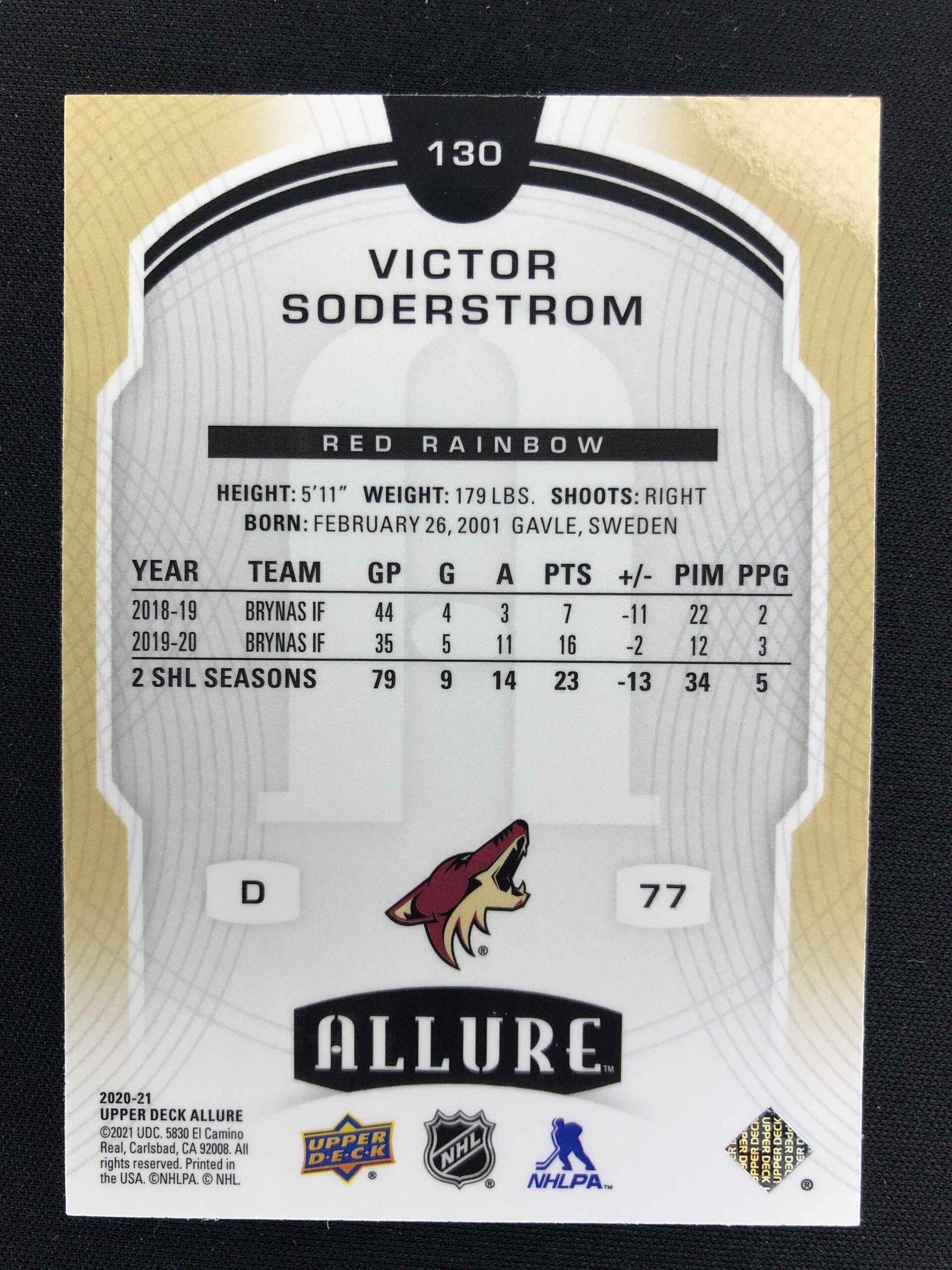 Sběratelská karta 2020/2021 Upper Deck Allure Red Rainbow 130 Victor Soderstrom Paralel