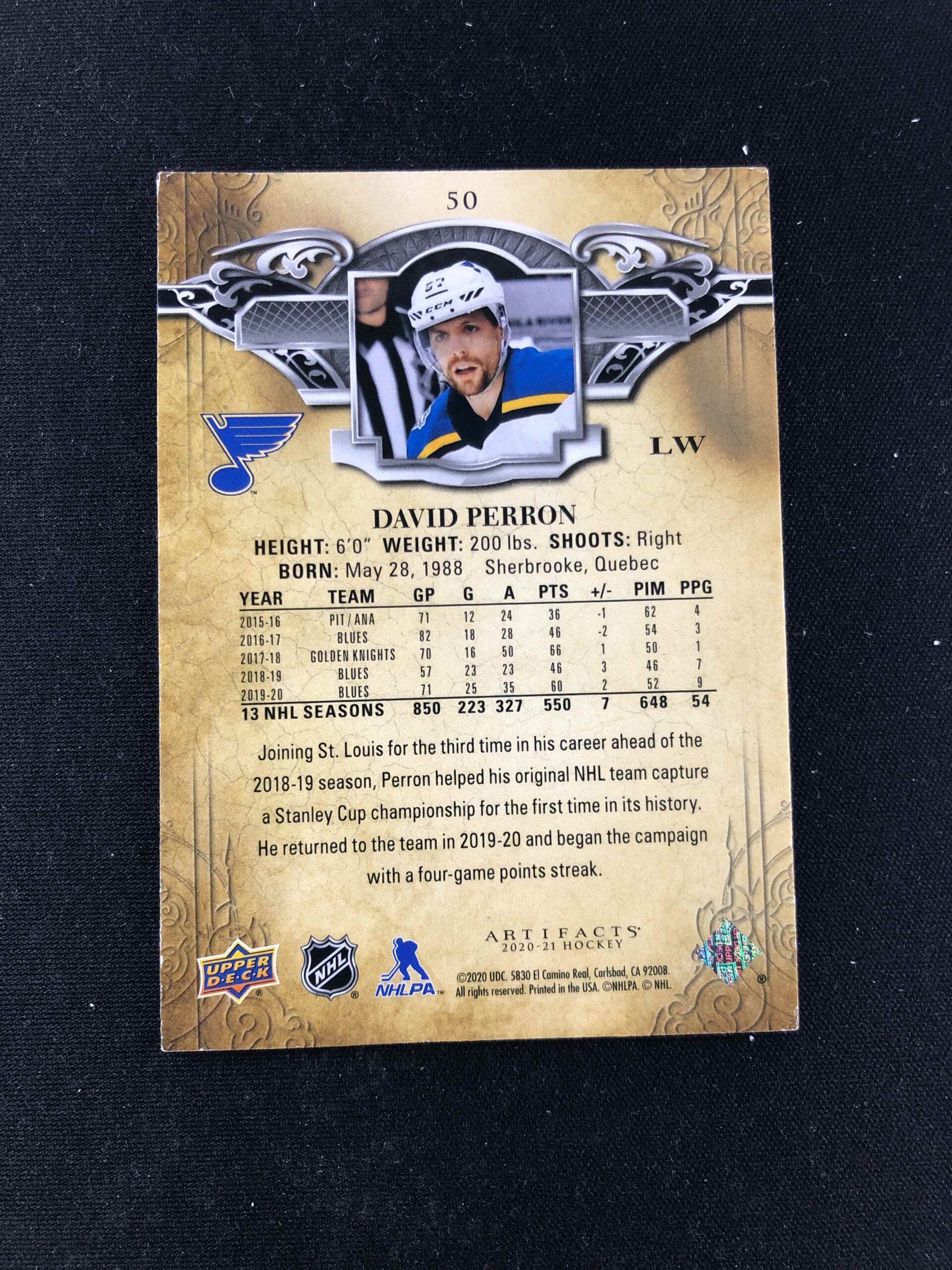 2020/2021 Upper Deck Artifacts Base 50 David Perron