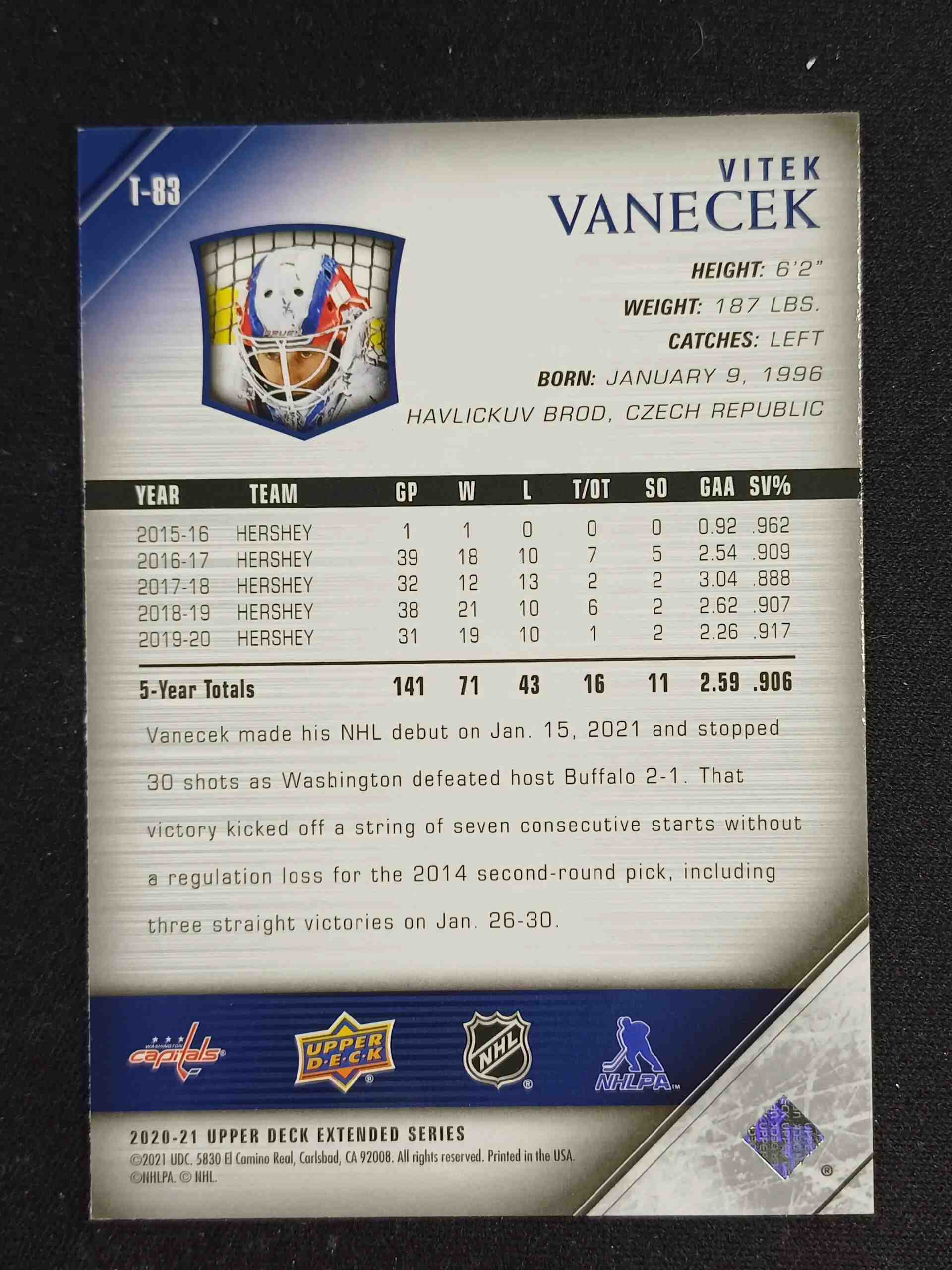 Sběratelská karta 2020/2021 Upper Deck Extended 2005/06 Tribute T-83 Vitek Vanecek Paralel