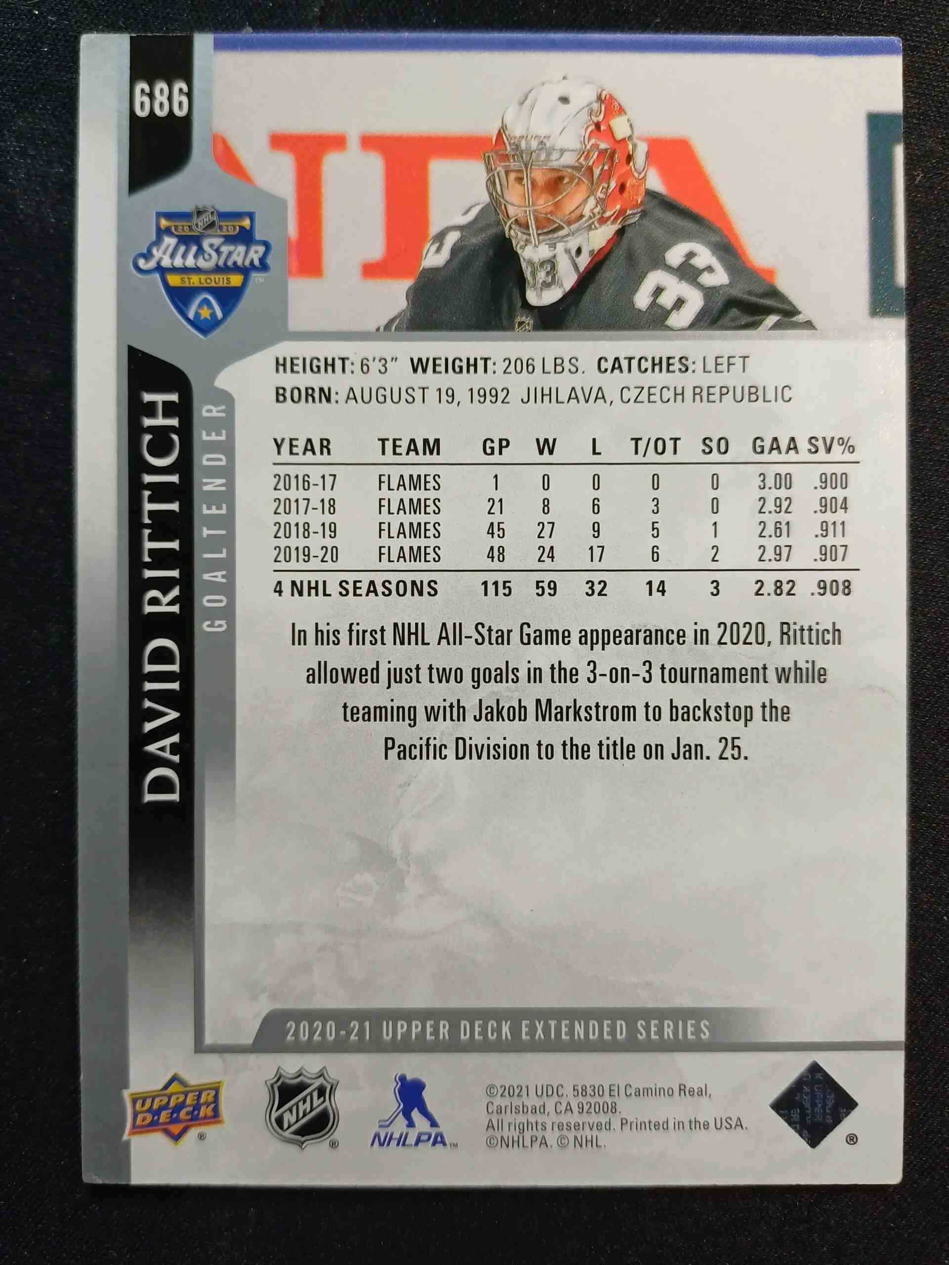Sběratelská karta 2020/2021 Upper Deck Extended Base 686 David Rittich /n/ Stav karty je NM-MT /n/ Pro bližší detail si prohlédněte přiložené fotografie