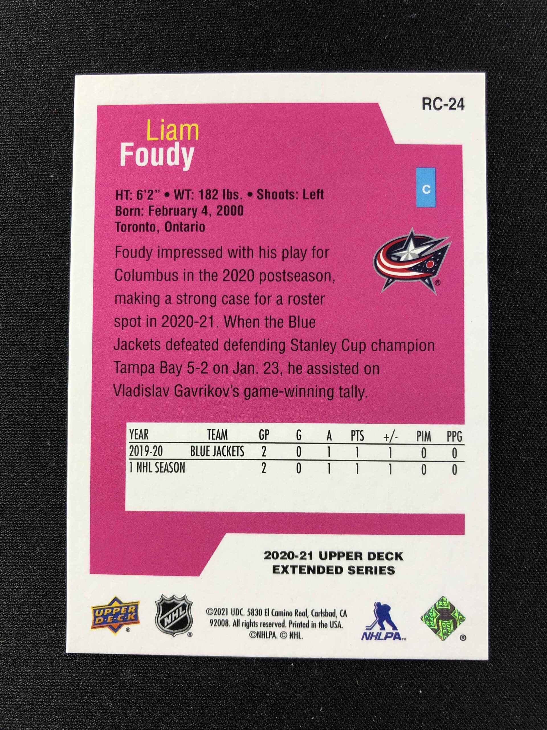 Sběratelská karta 2020/2021 Upper Deck Extended Rookie Class SE RC-24 Liam Foudy Inzert