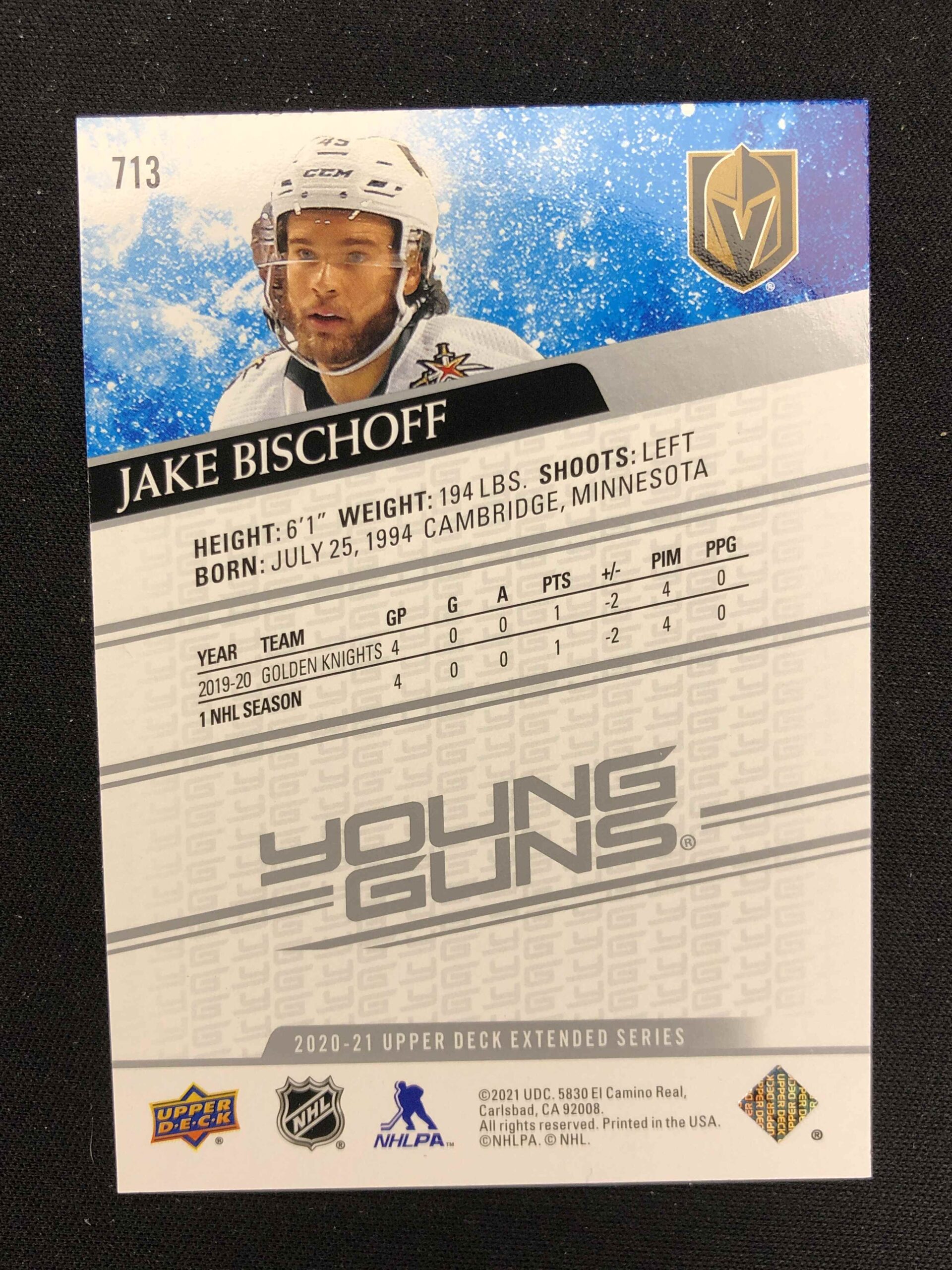 2020/2021 Upper Deck Extended Young Guns 713 Jake Bischoff Inzert