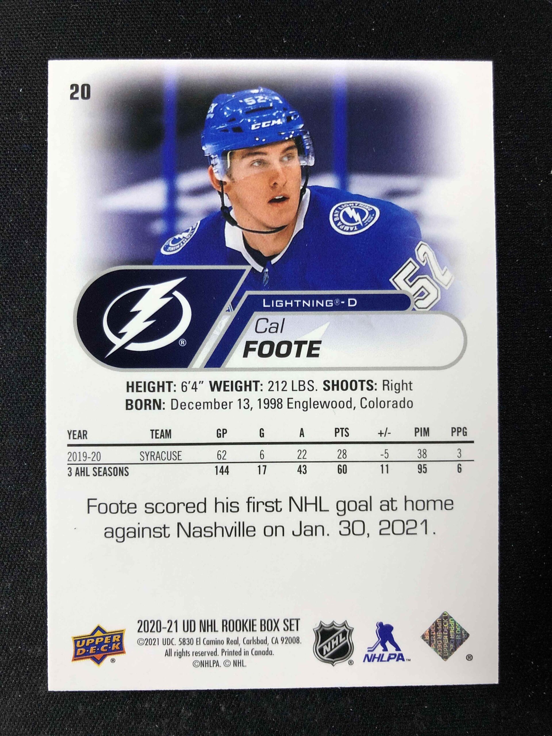 Sběratelská karta 2020/2021 Upper Deck NHL Star Rookies Box Set Base 20 Cal Foote