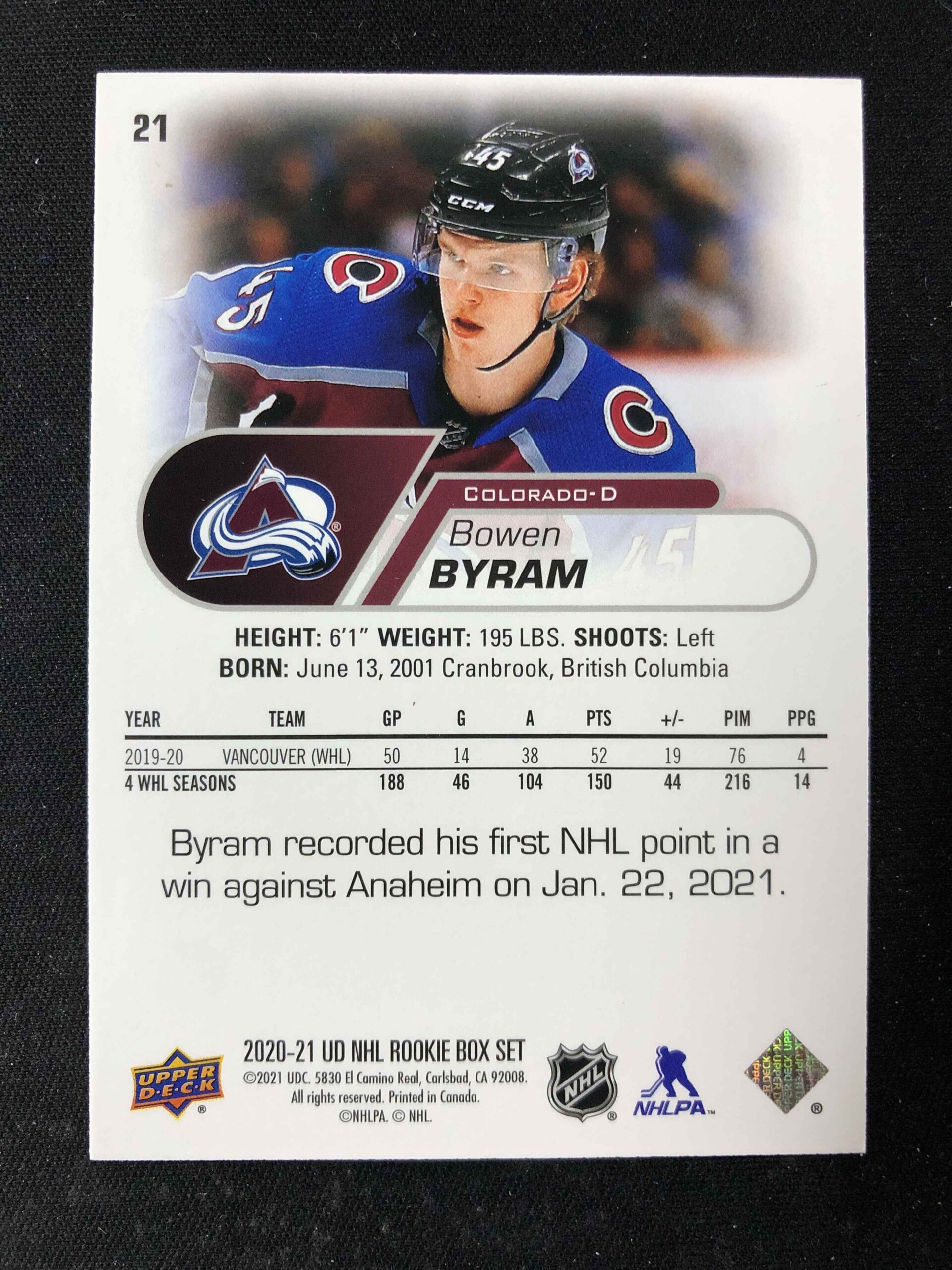 Sběratelská karta 2020/2021 Upper Deck NHL Star Rookies Box Set Base 21 Bowen Byram