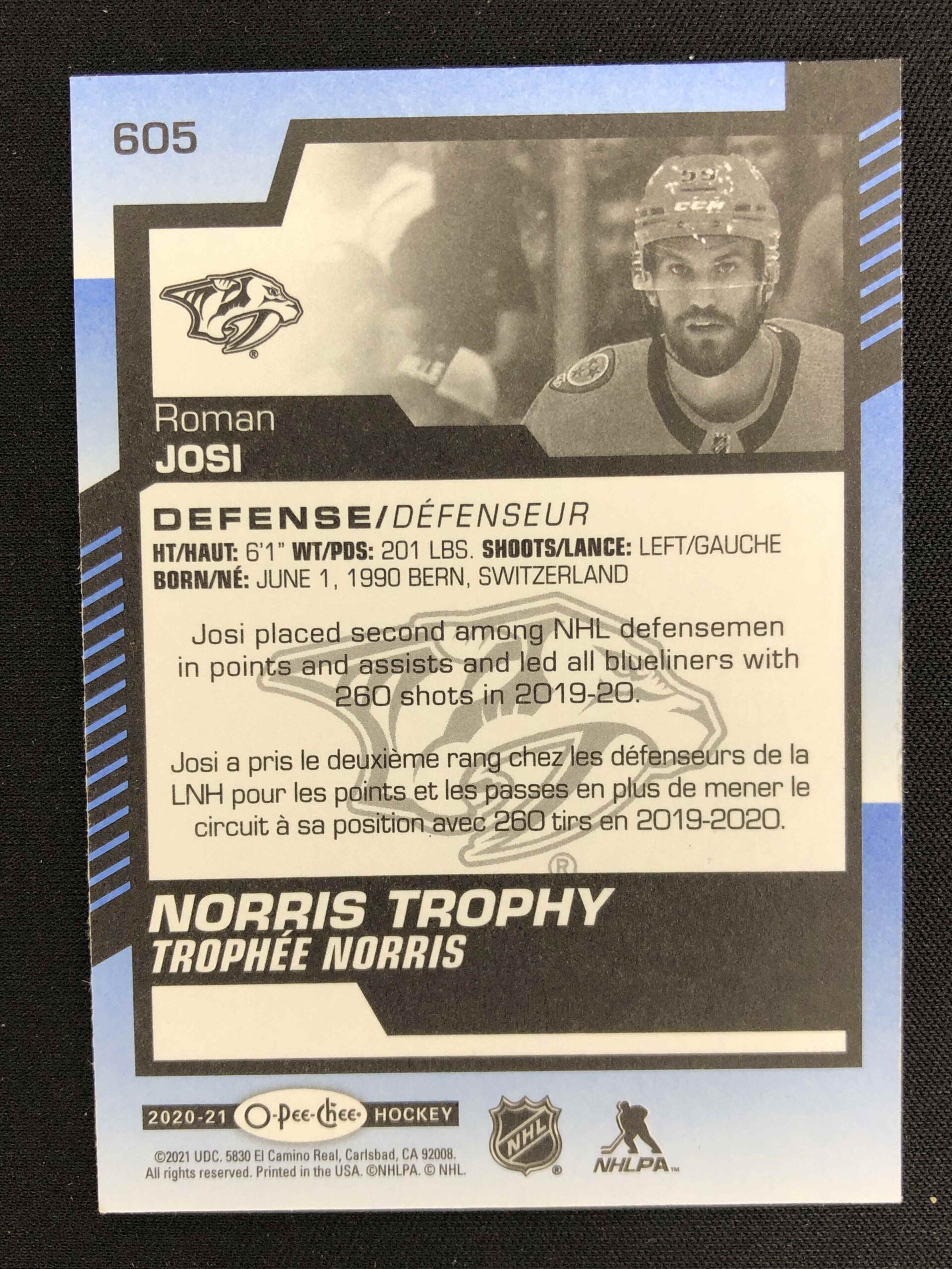 Sběratelská karta 2020/2021 Upper Deck O-Pee-Chee Blue Border 605 Roman Josi Paralel