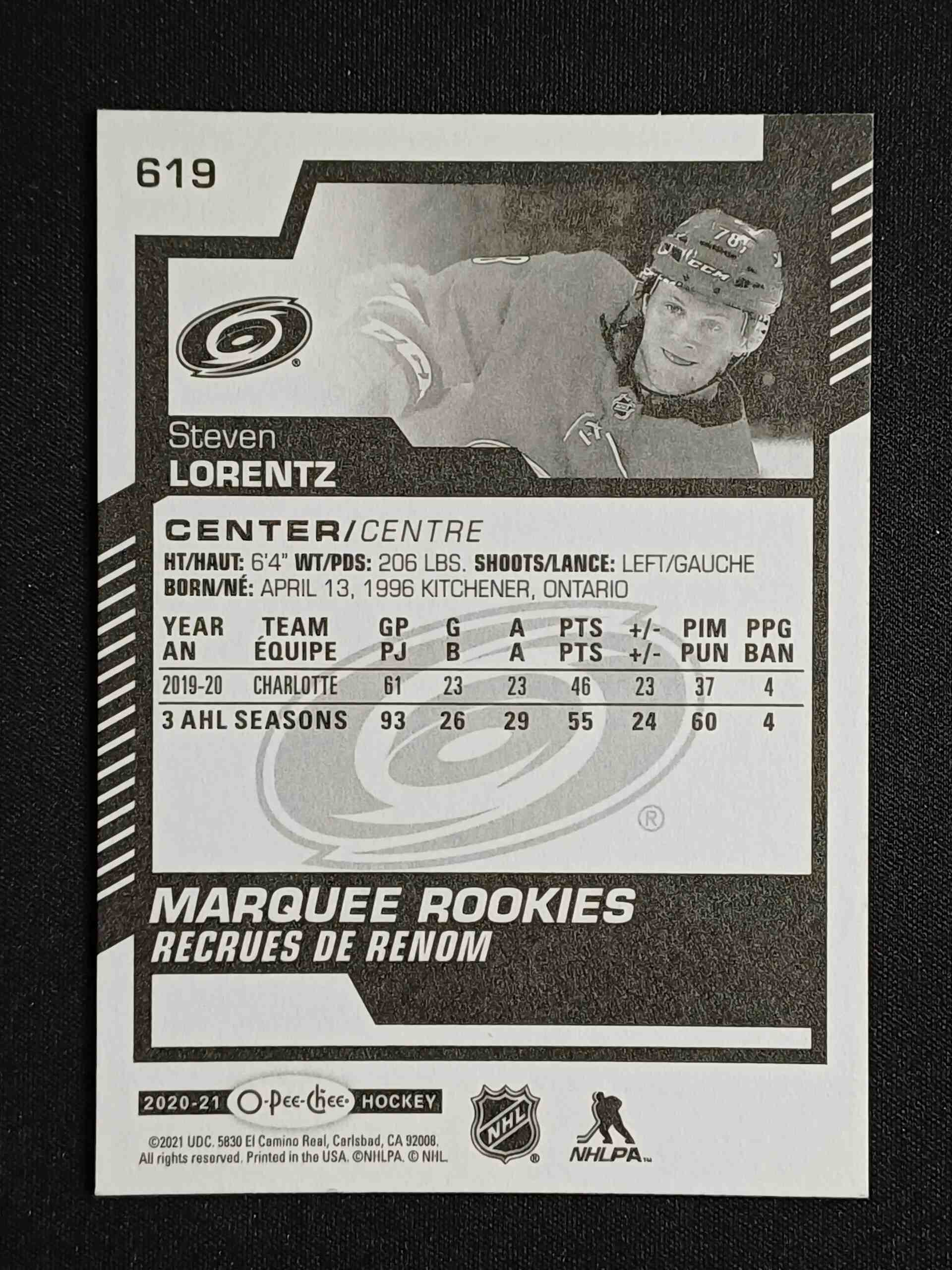 Sběratelská karta 2020/2021 Upper Deck O-Pee-Chee Marquee Rookie 619 Steven Lorentz