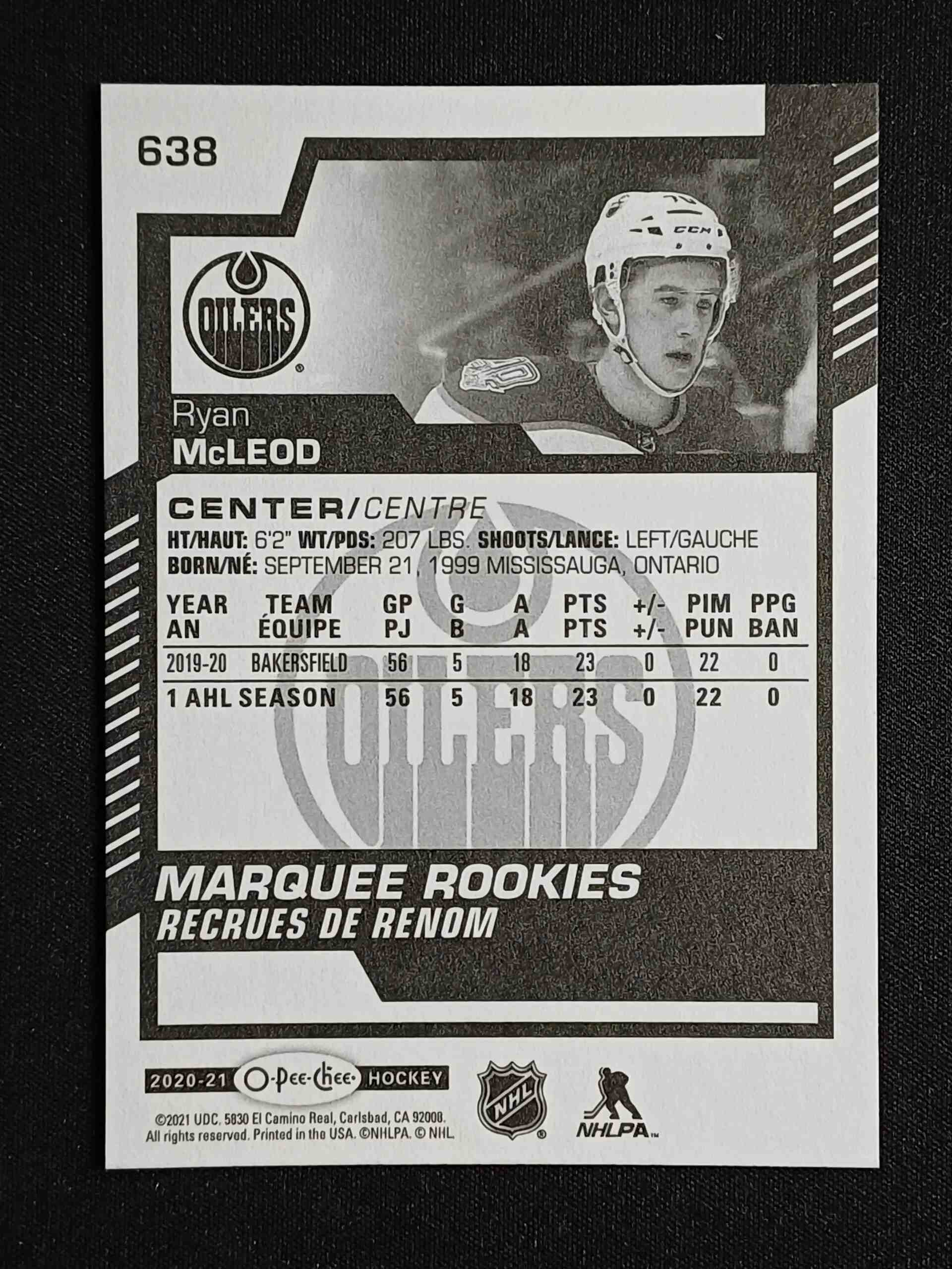 Sběratelská karta 2020/2021 Upper Deck O-Pee-Chee Marquee Rookie 638 Ryan McLeod