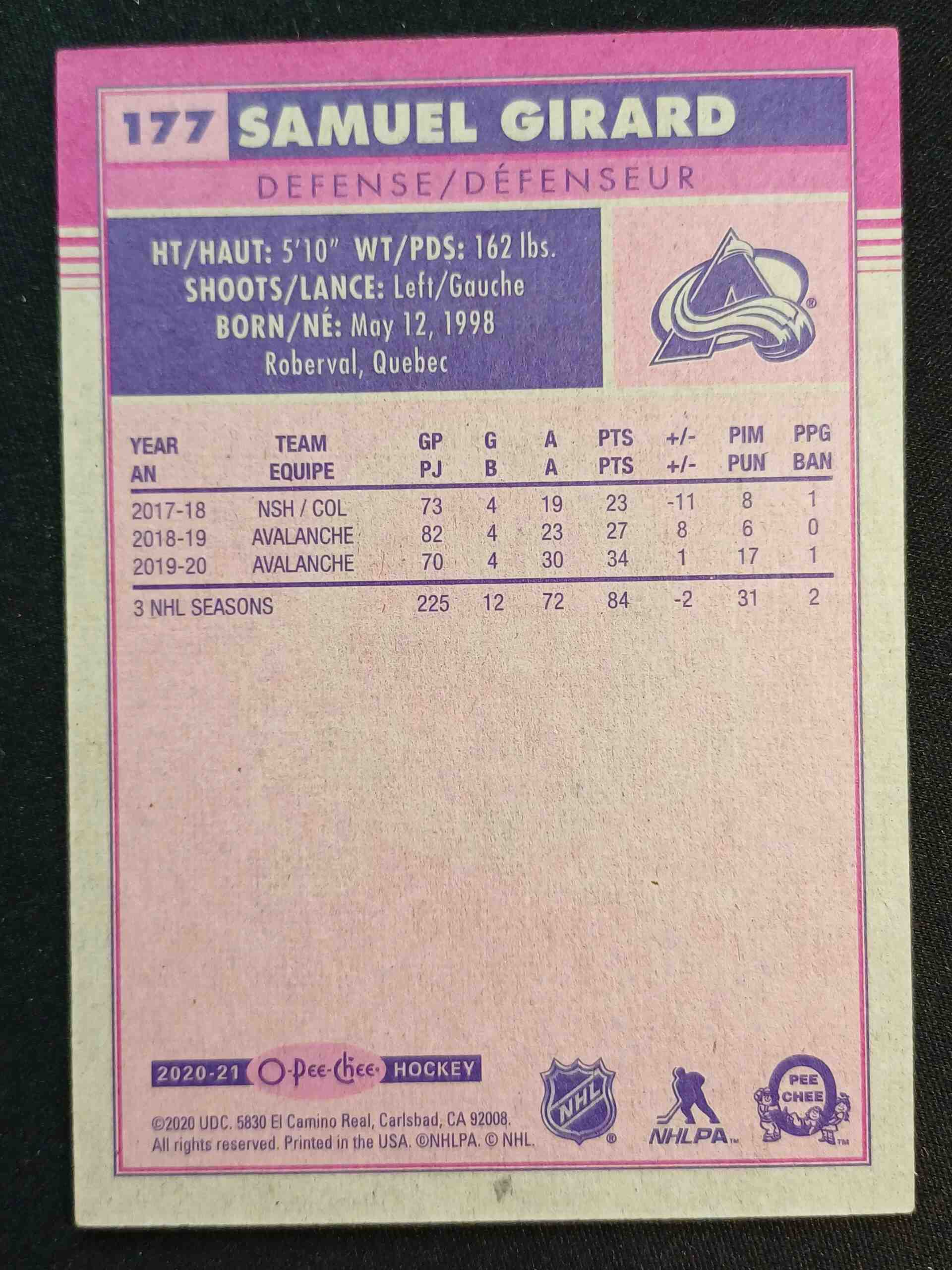 Sběratelská karta 2020/2021 Upper Deck O-Pee-Chee Retro 177 Samuel Girard Paralel