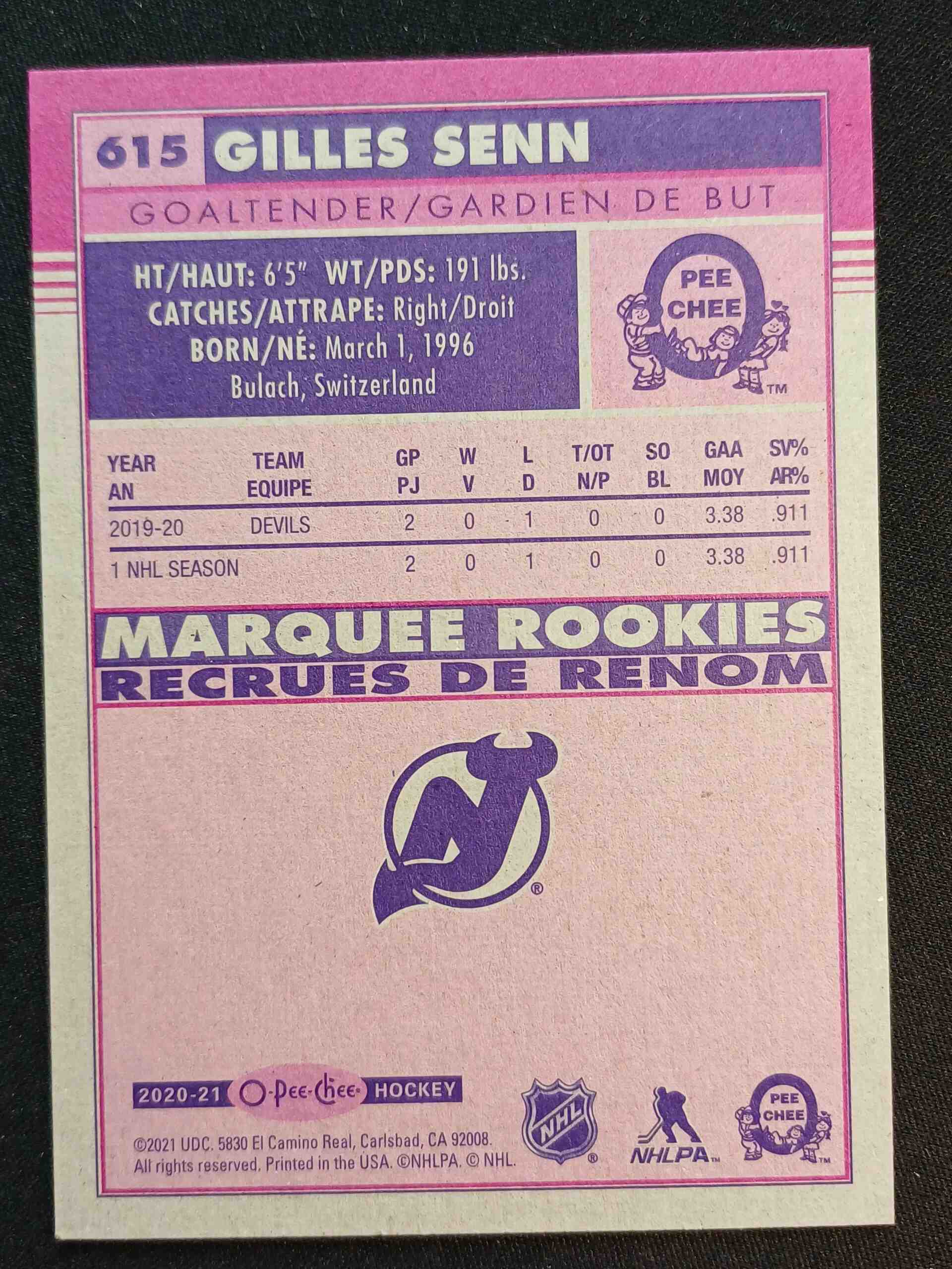 Sběratelská karta 2020/2021 Upper Deck O-Pee-Chee Retro Marquee Rookie 615 Gilles Senn Paralel