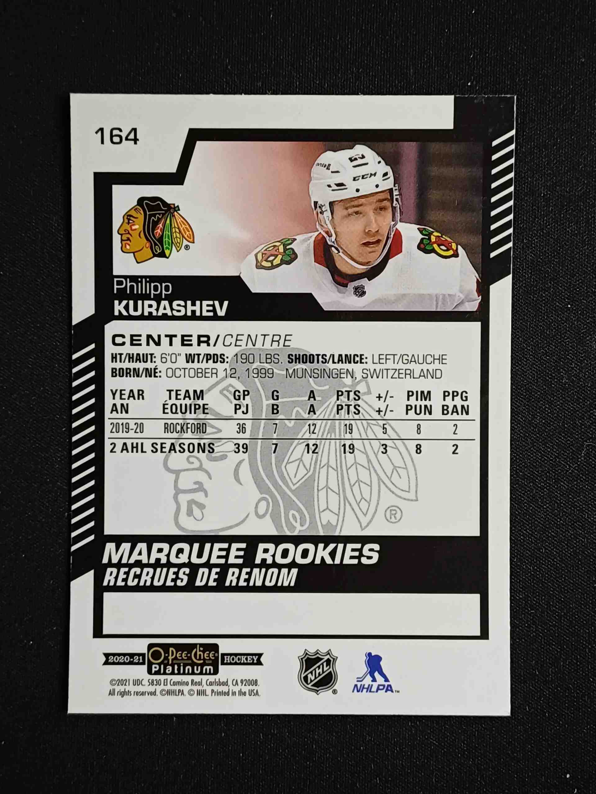 Sběratelská karta 2020/2021 Upper Deck OPC Platinum Base 164 Philipp Kurashev