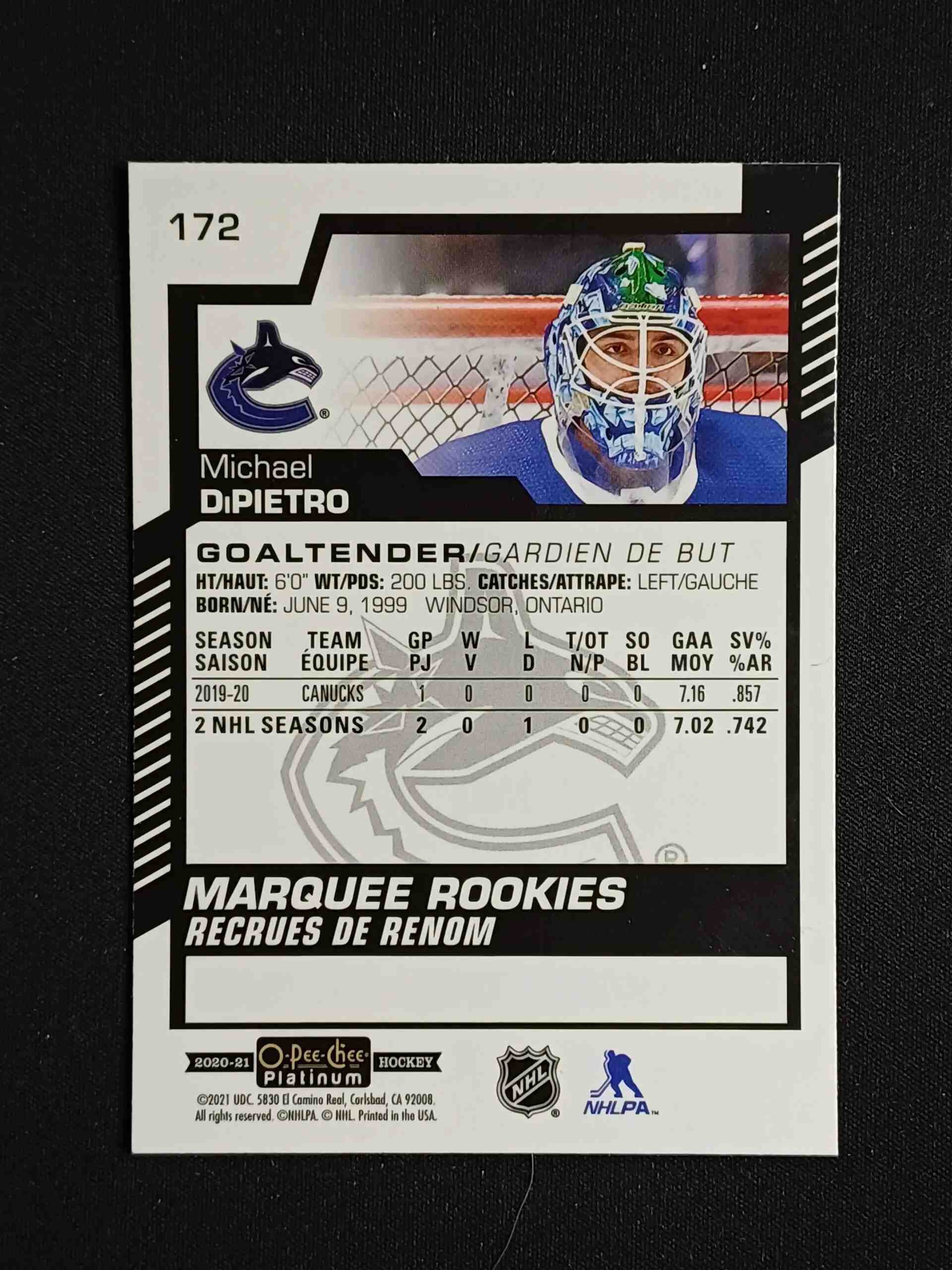Sběratelská karta 2020/2021 Upper Deck OPC Platinum Base 172 Michael diPietro