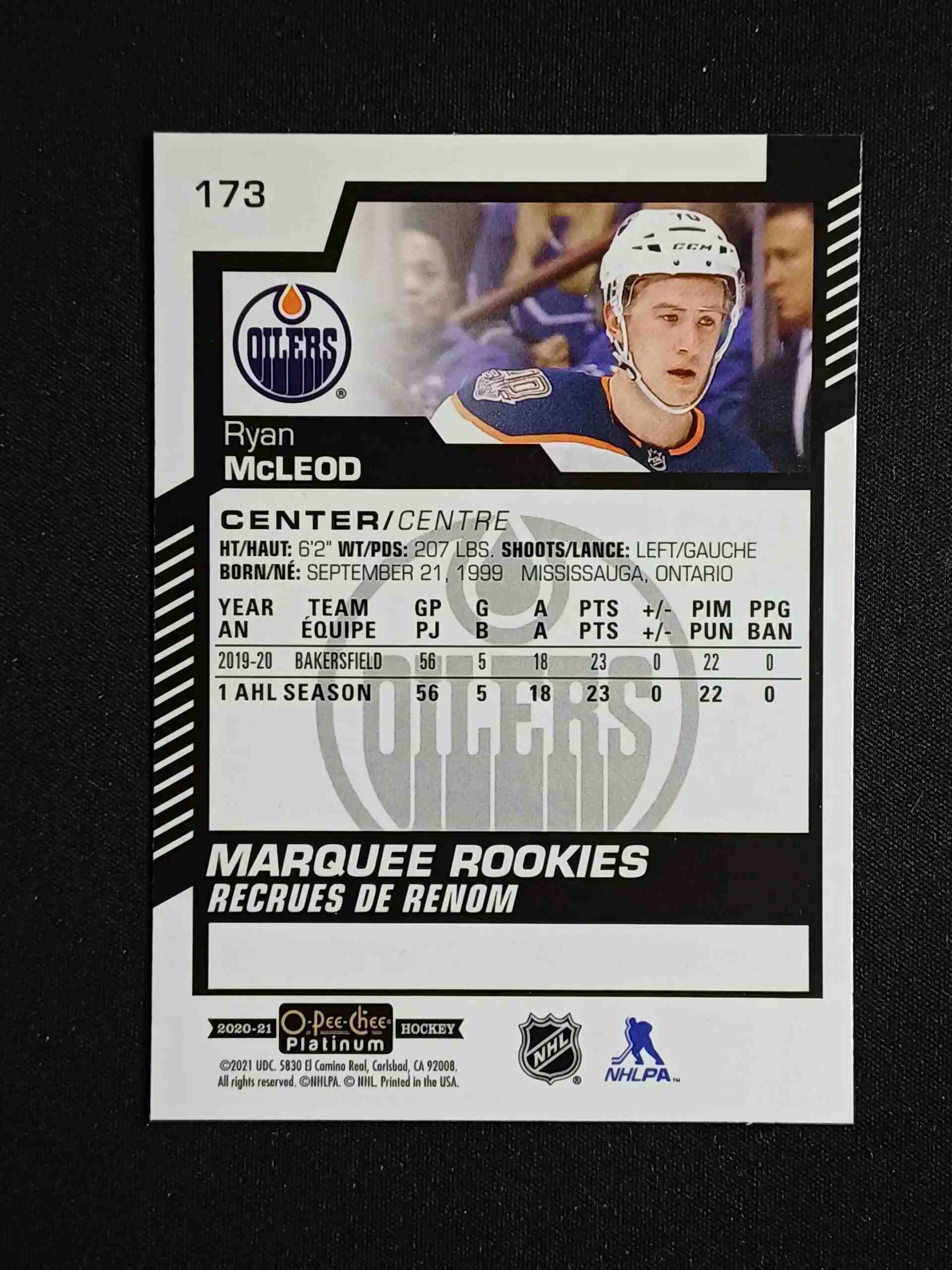 Sběratelská karta 2020/2021 Upper Deck OPC Platinum Base 173 Ryan McLeod