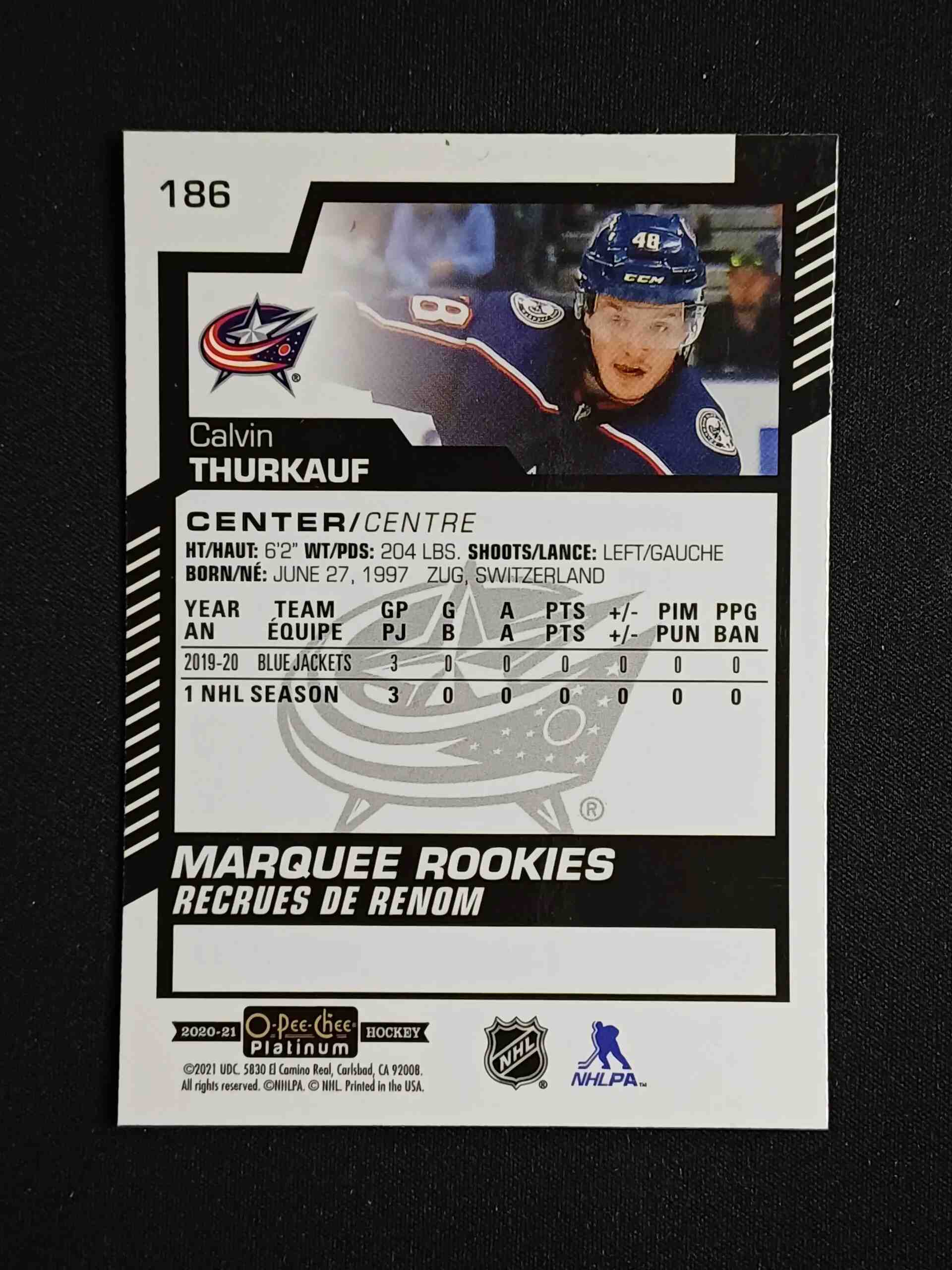 Sběratelská karta 2020/2021 Upper Deck OPC Platinum Base 186 Calvin Thurkauf