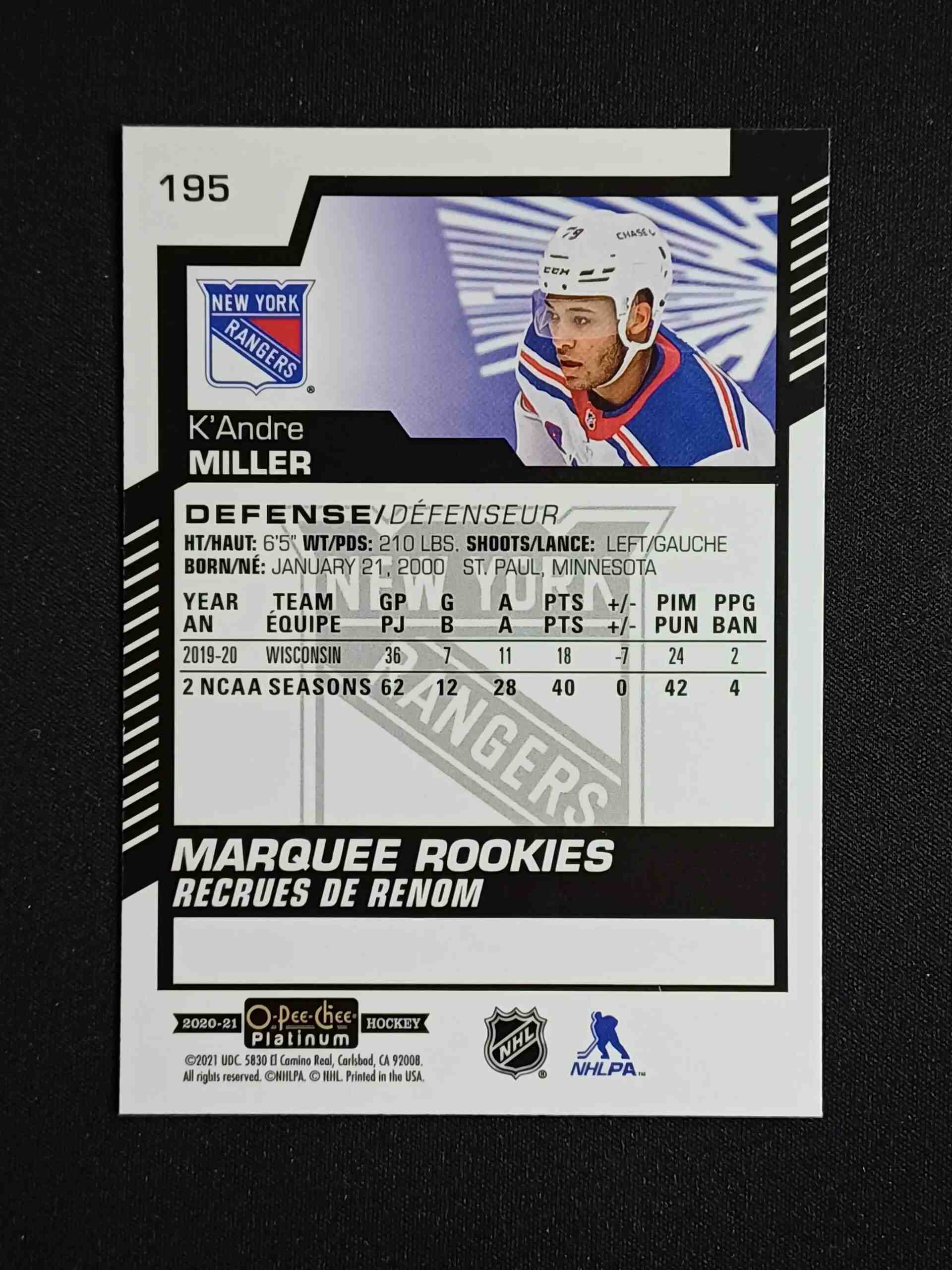 2020/2021 Upper Deck OPC Platinum Base 195 K’Andre Miller