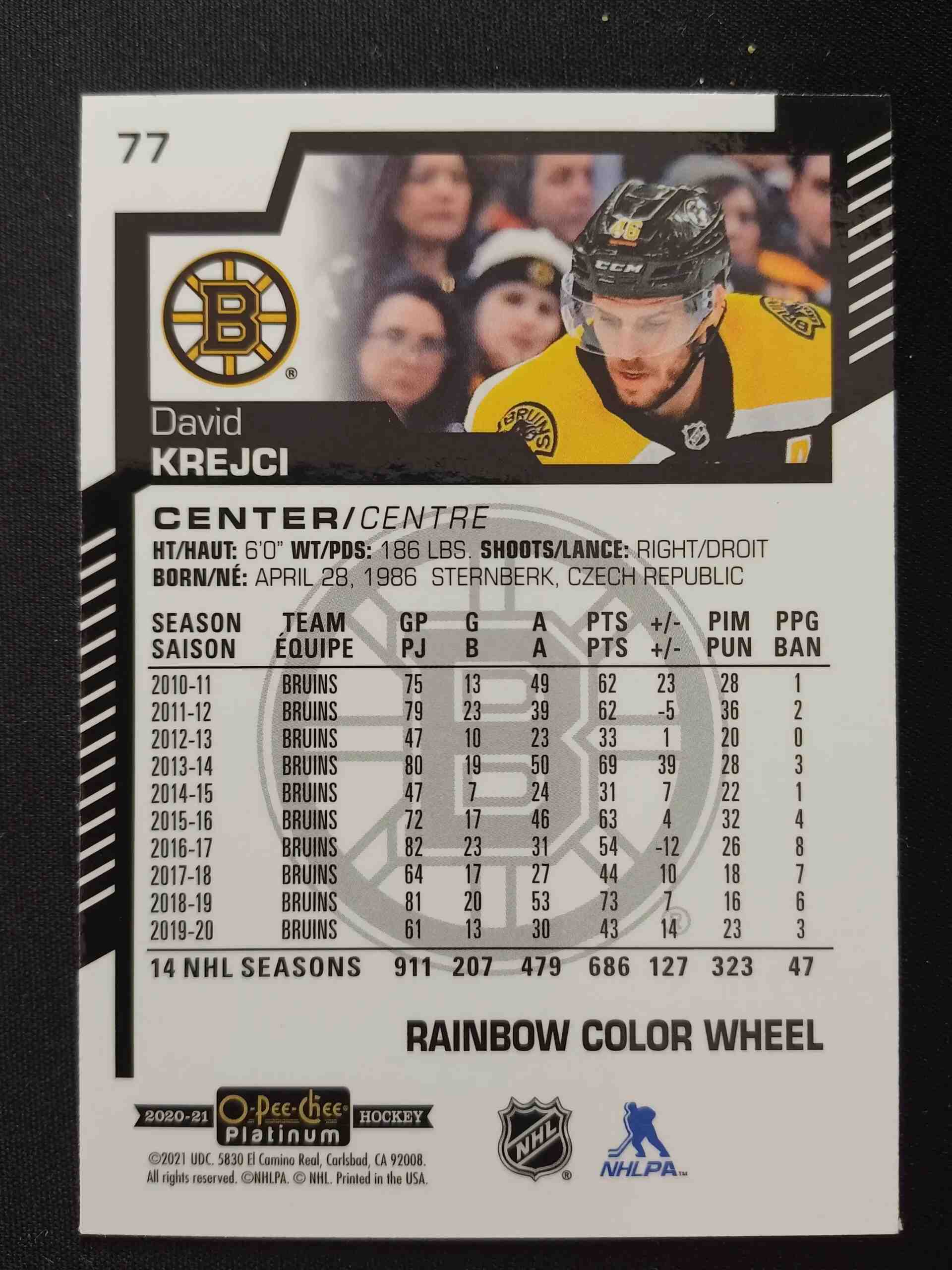 Sběratelská karta 2020/2021 Upper Deck OPC Platinum Rainbow Color Wheel 77 David Krejci Paralel