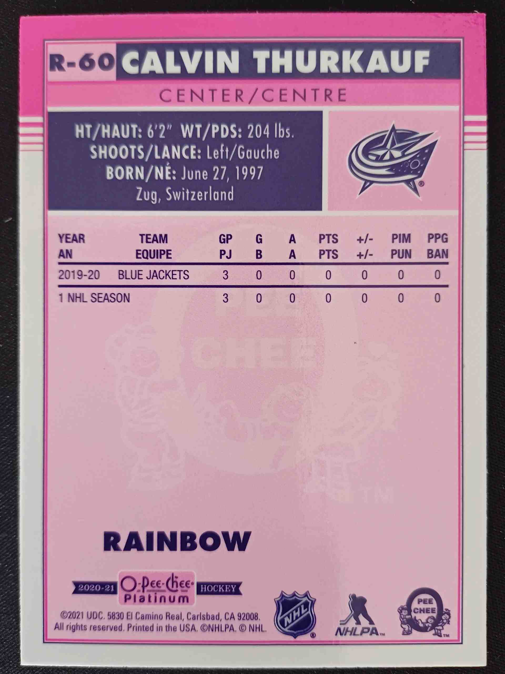 Sběratelská karta 2020/2021 Upper Deck OPC Platinum Retro Rainbow Marquee Rookie R-60 Calvin Thurkauf Paralel