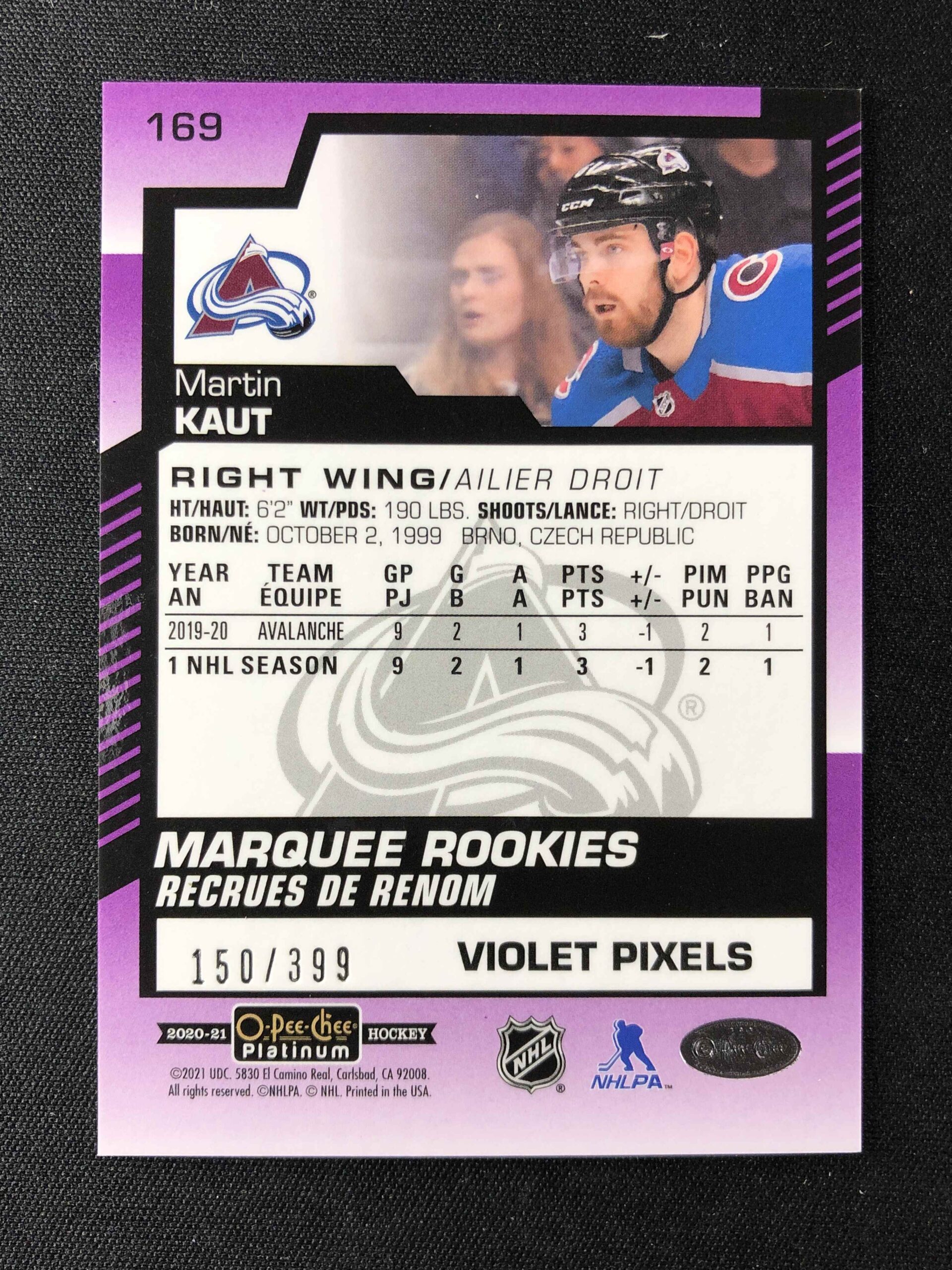 Sběratelská karta 2020/2021 Upper Deck OPC Platinum Violet Pixels Marquee Rookie 189 Martin Kaut Paralel 150/399