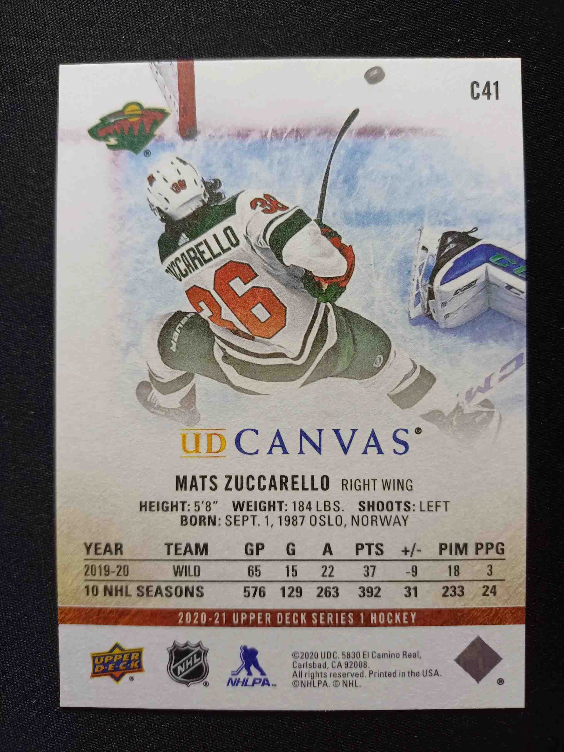 Sběratelská karta 2020/2021 Upper Deck Series 1 Canvas C-41 Mats Zuccarello Inzert