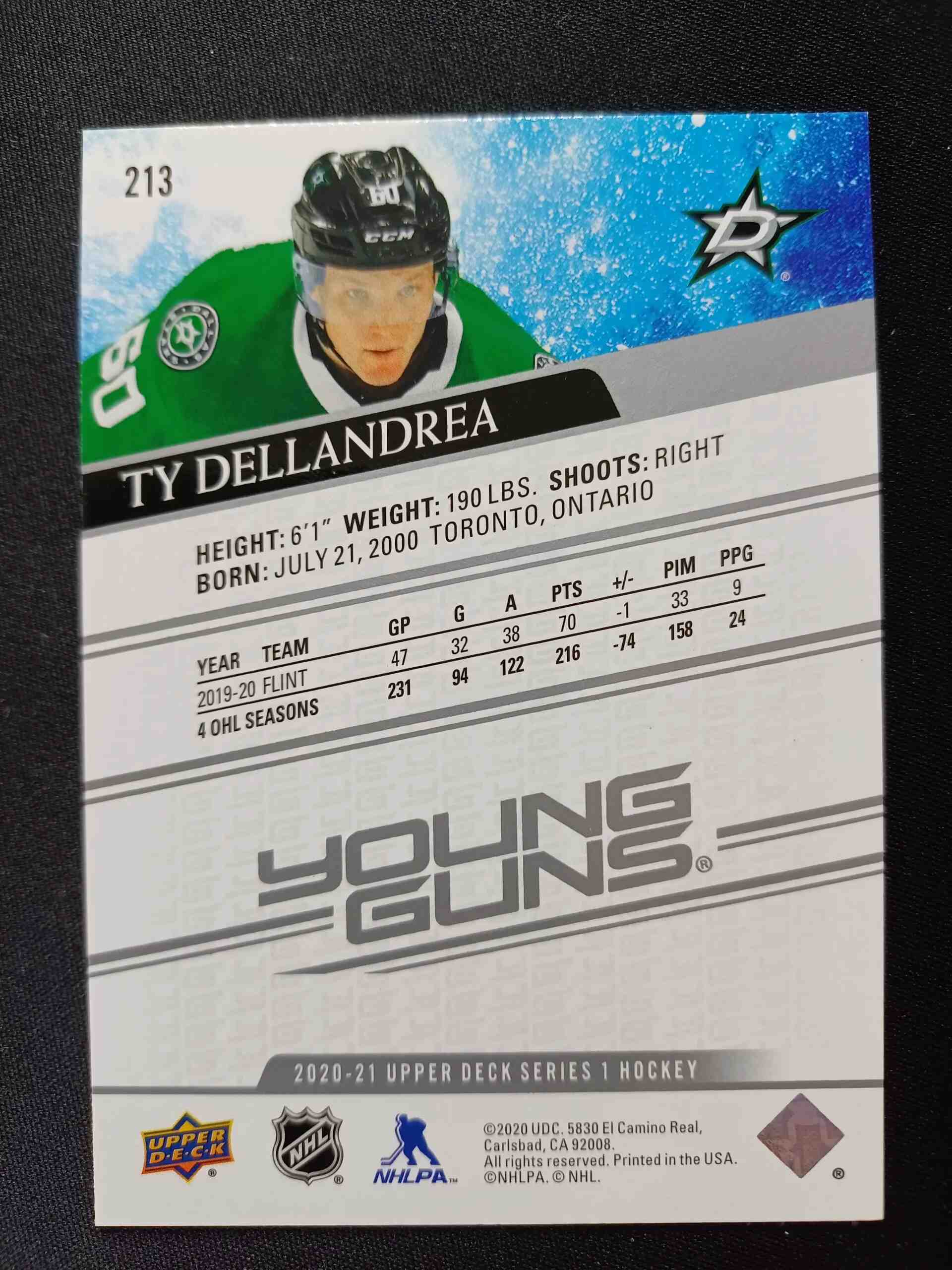 2020/2021 Upper Deck Series 1 Young Guns 213 Ty Dellandrea Inzert