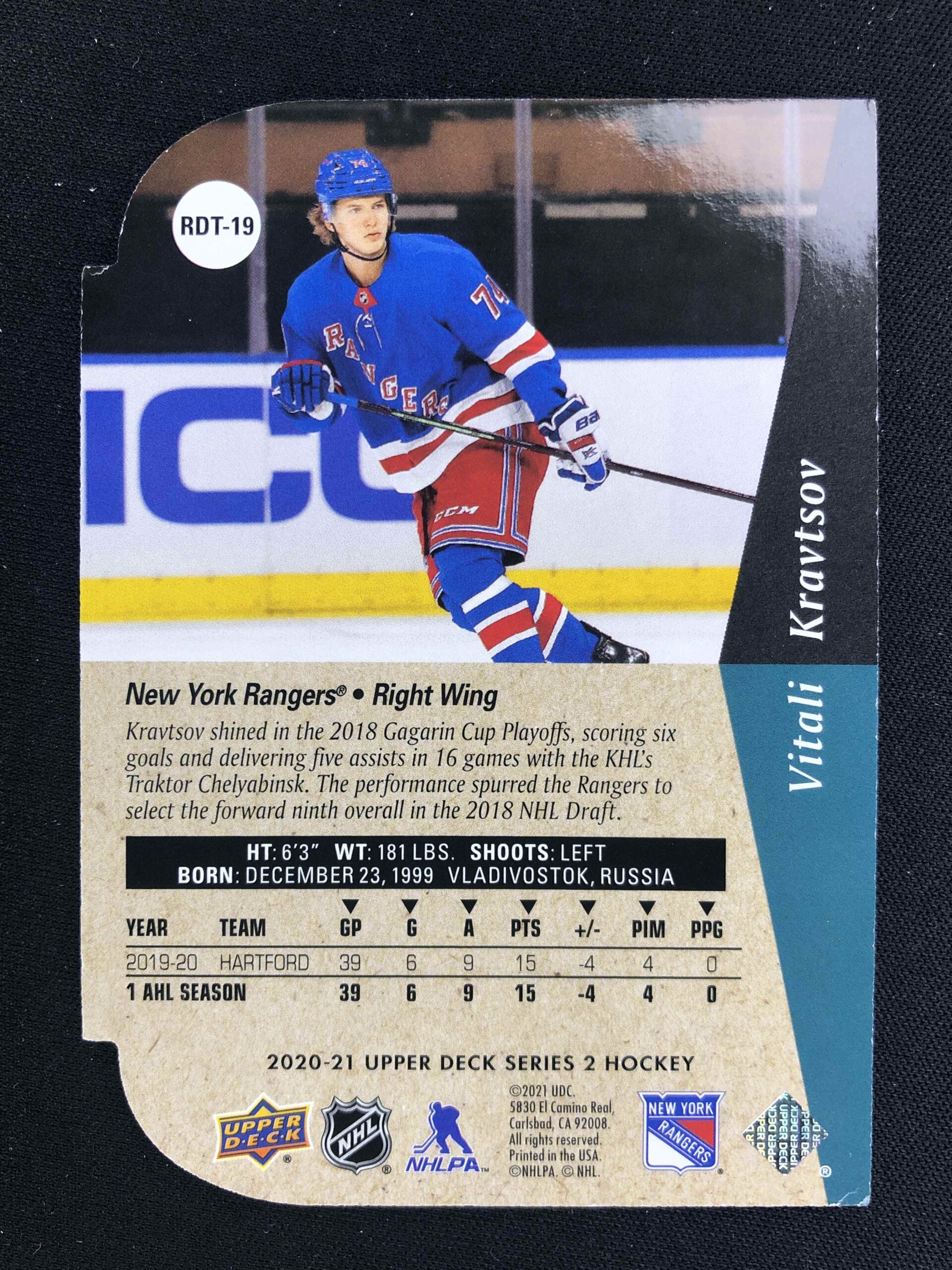 Sběratelská karta 2020/2021 Upper Deck Series 2 94/95 Rookie Tribute Die-Cuts RDT-19 Vitali Kravtsov Inzert