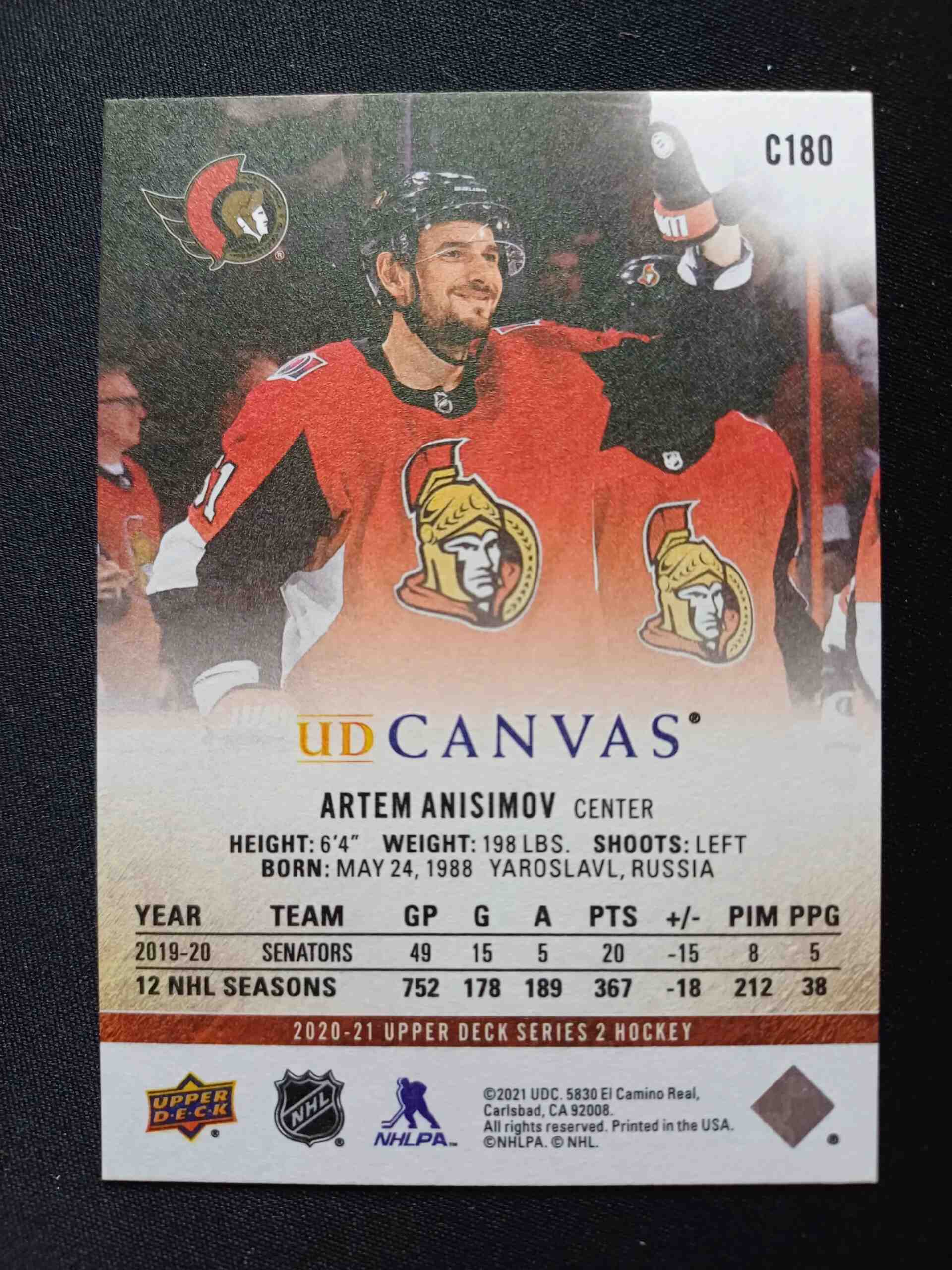 Sběratelská karta 2020/2021 Upper Deck Series 2 Canvas C-180 Artem Anisimov Inzert