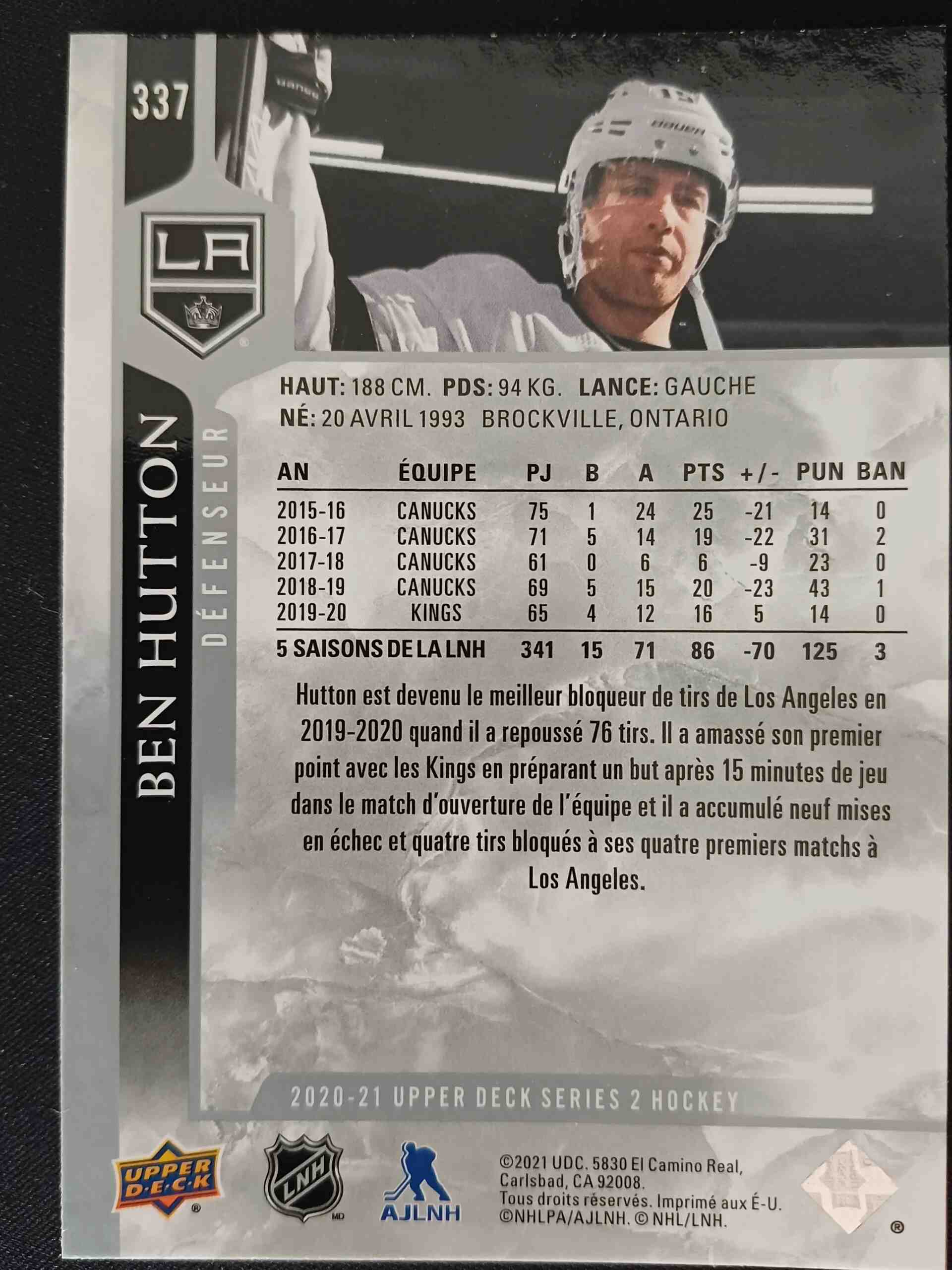 Sběratelská karta 2020/2021 Upper Deck Series 2 Base French 337 Ben Hutton Paralel