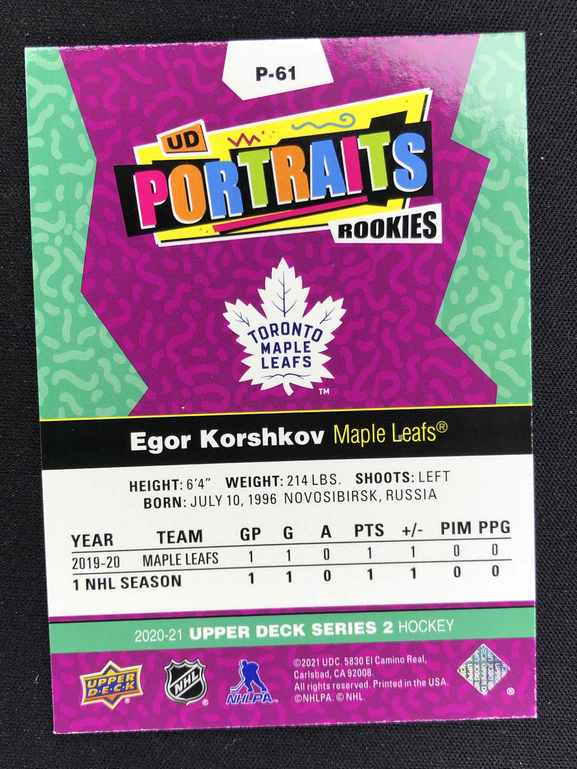 Sběratelská karta 2020/2021 Upper Deck Series 2 Portraits P-61 Egor Korshkov Inzert