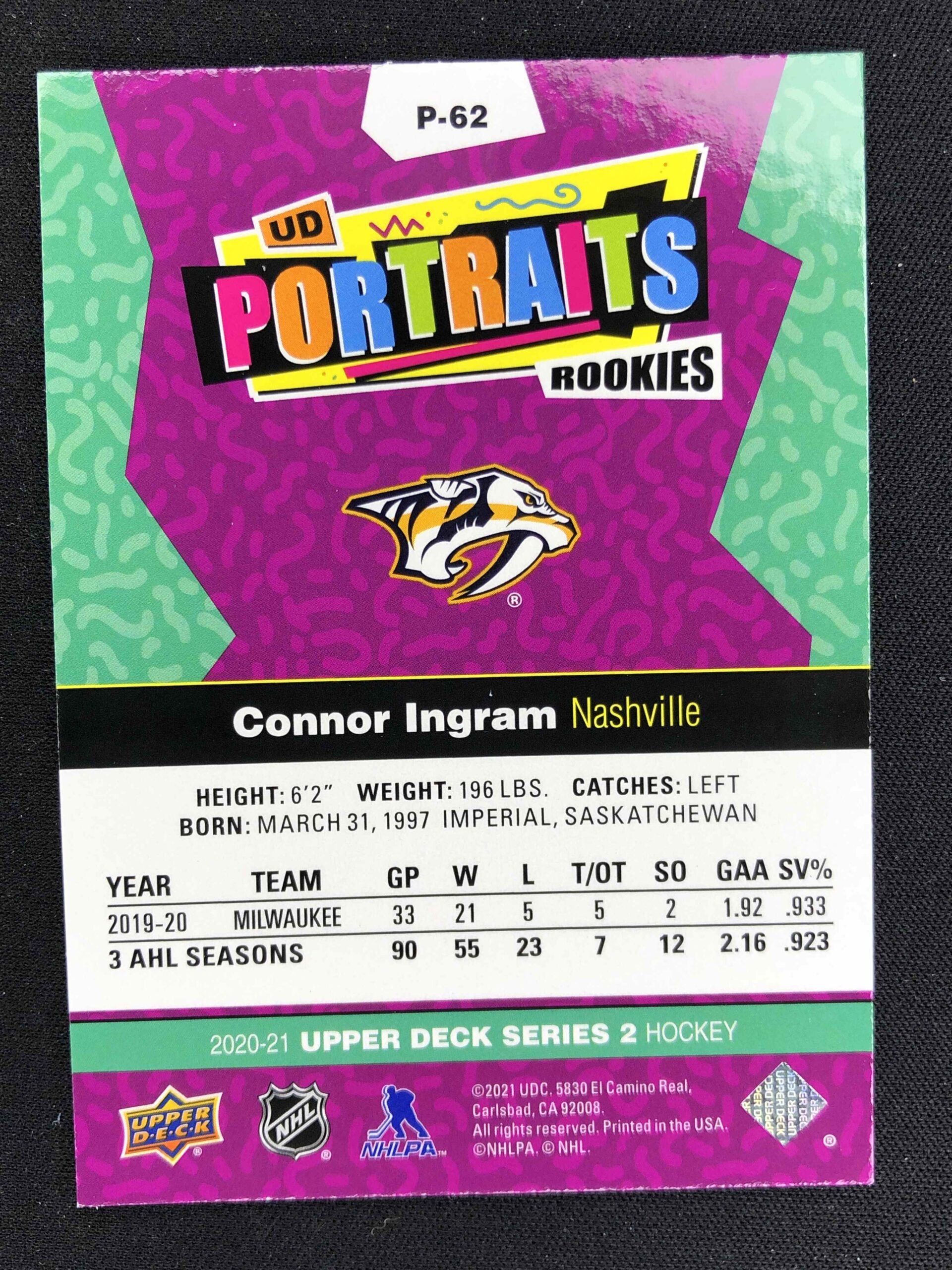 Sběratelská karta 2020/2021 Upper Deck Series 2 Portraits P-62 Connor Ingram Inzert