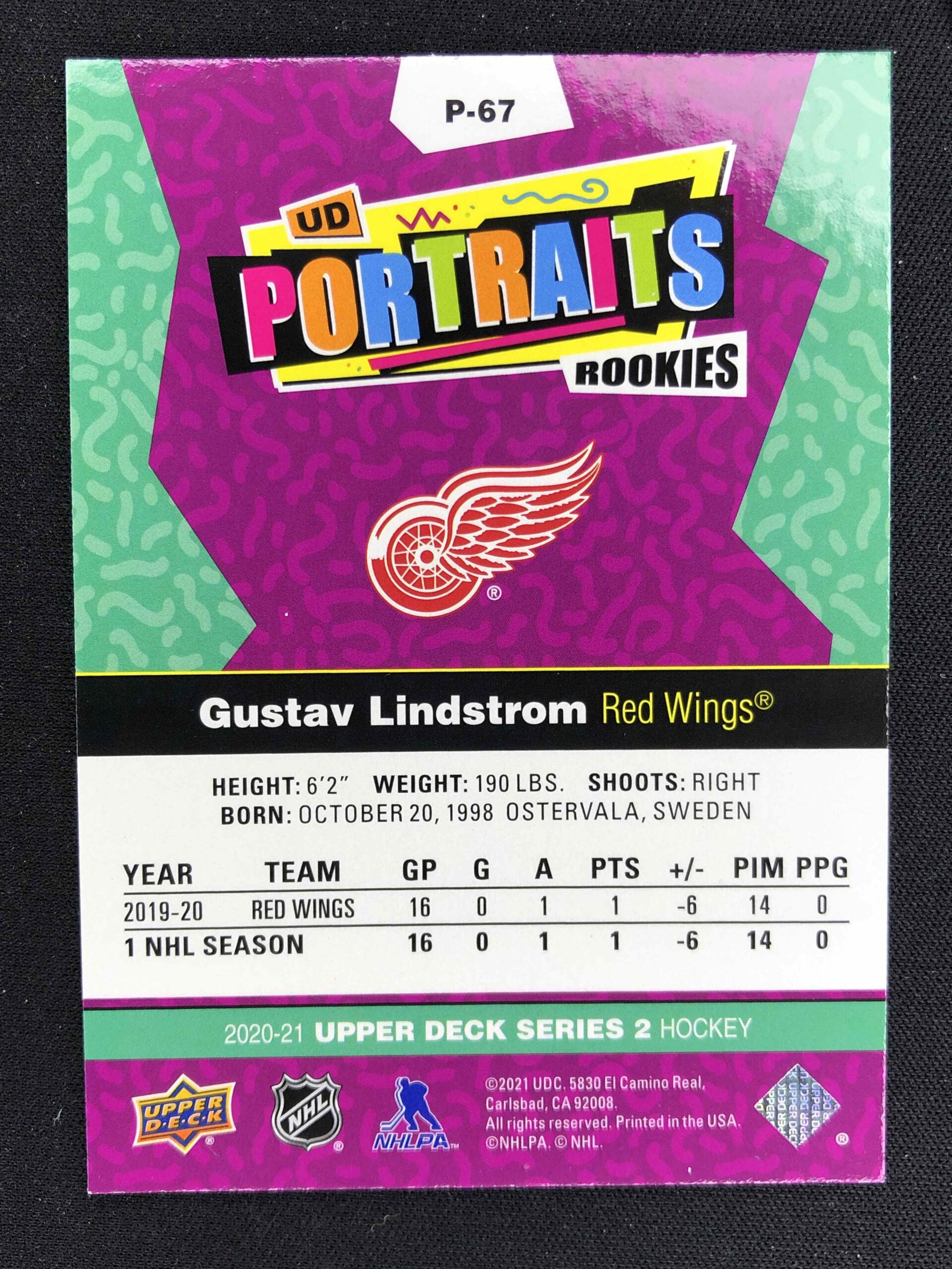 2020/2021 Upper Deck Series 2 Portraits P-67 Gustav Lindstrom Inzert