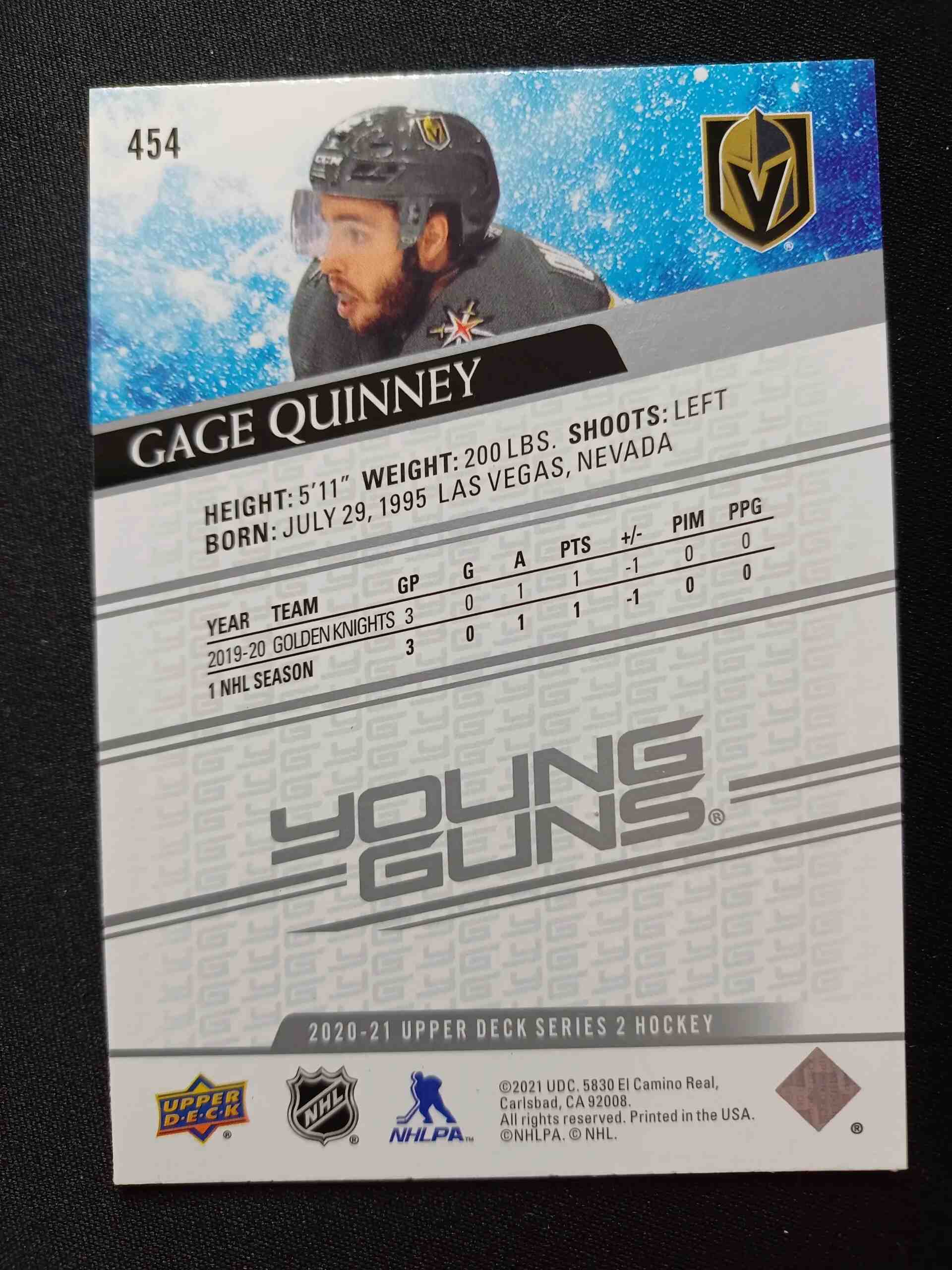 Sběratelská karta 2020/2021 Upper Deck Series 2 Young Guns 454 Cage Quinney Inzert