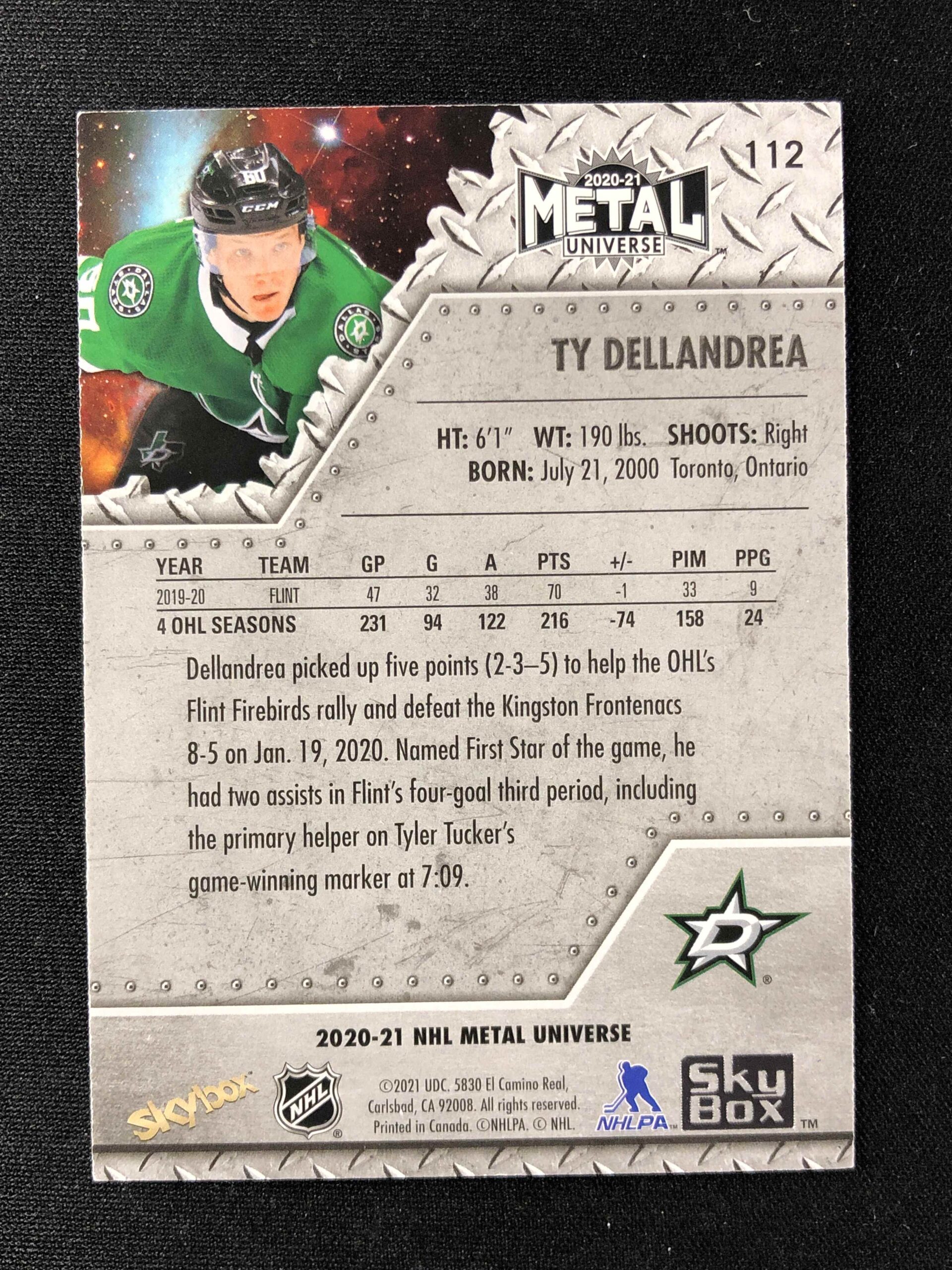 2020/2021 Upper Deck Skybox Metal Universe Base 112 Ty Dellandrea