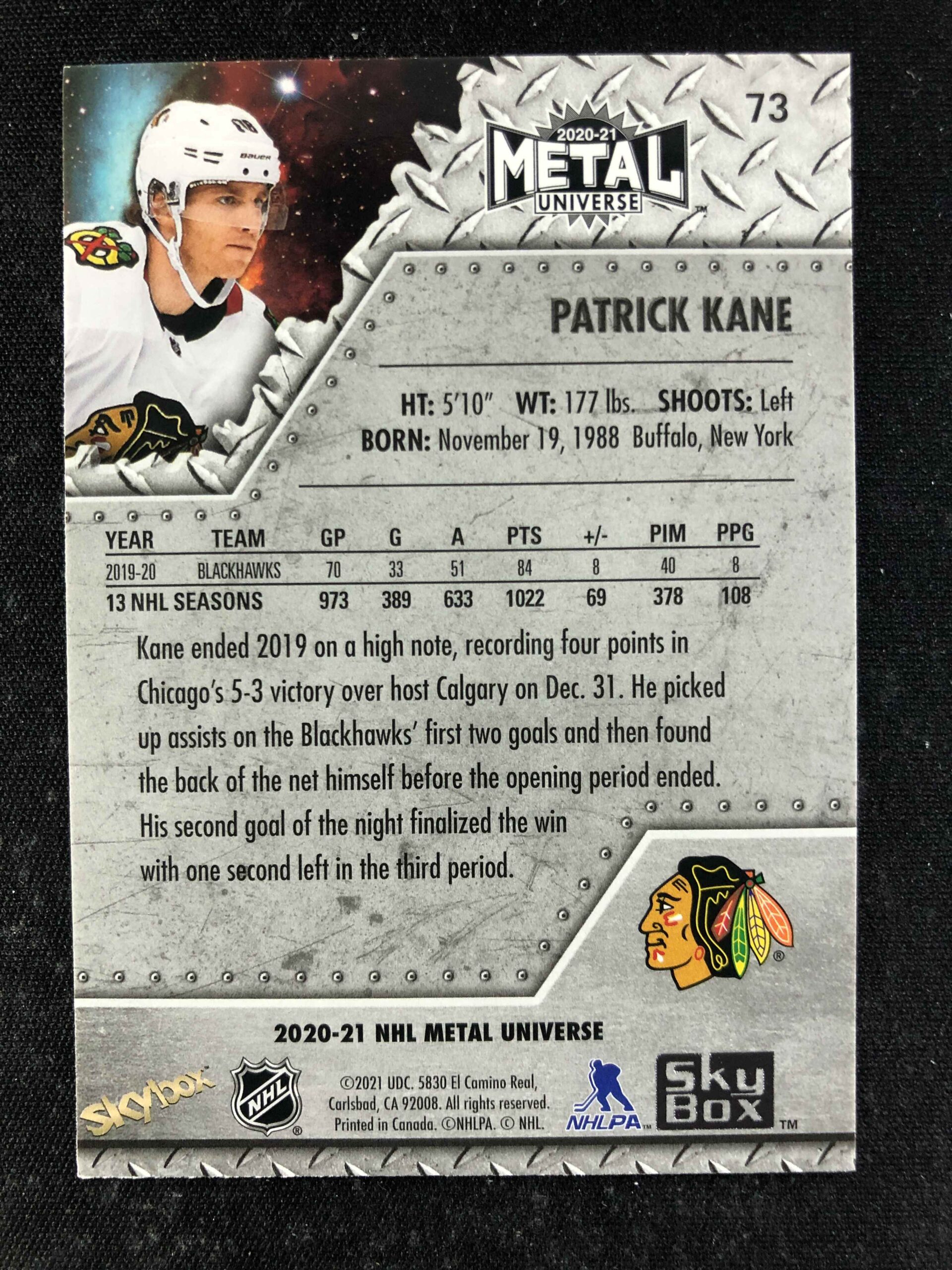 2020/2021 Upper Deck Skybox Metal Universe Base 73 Patrick Kane