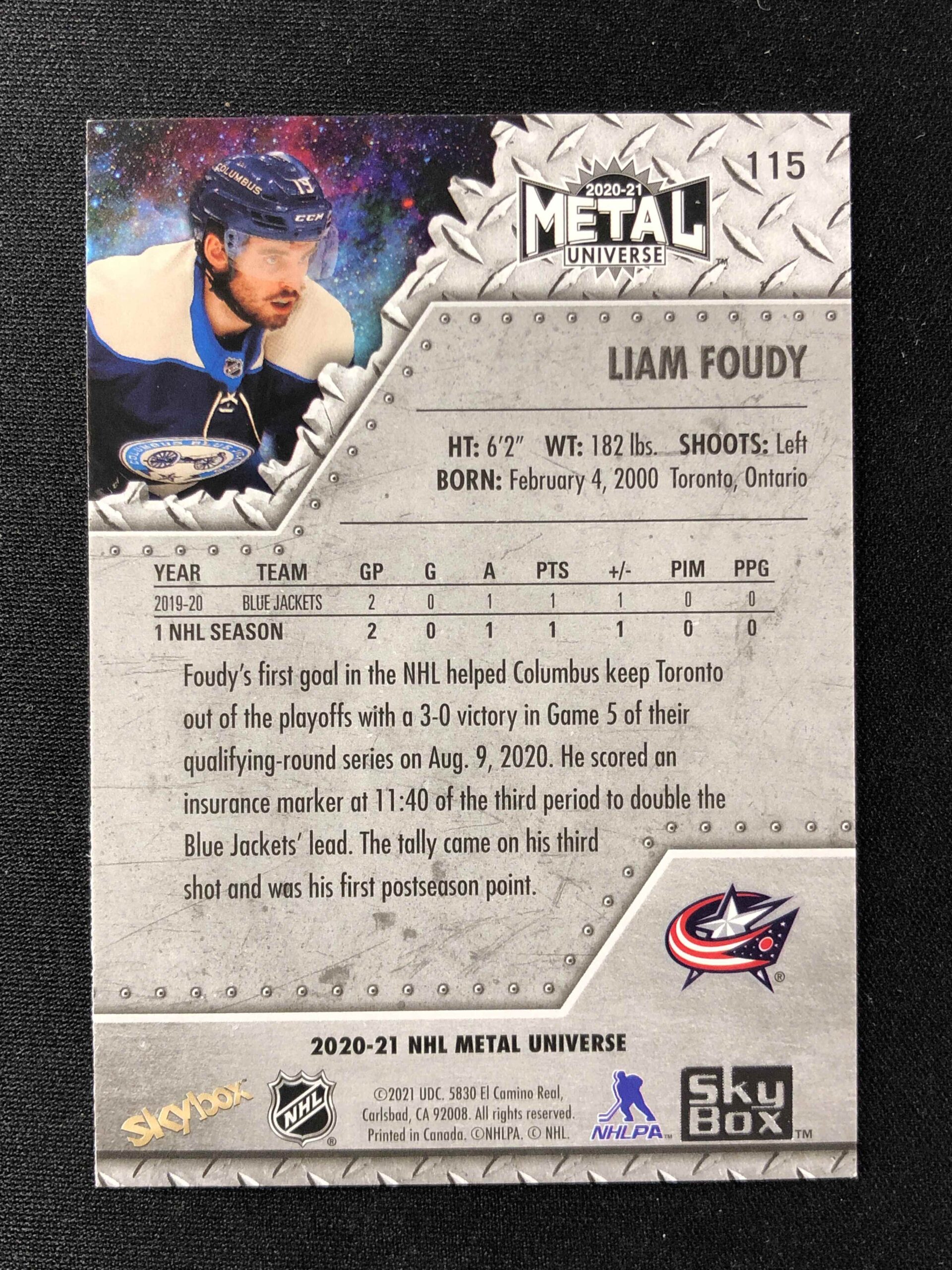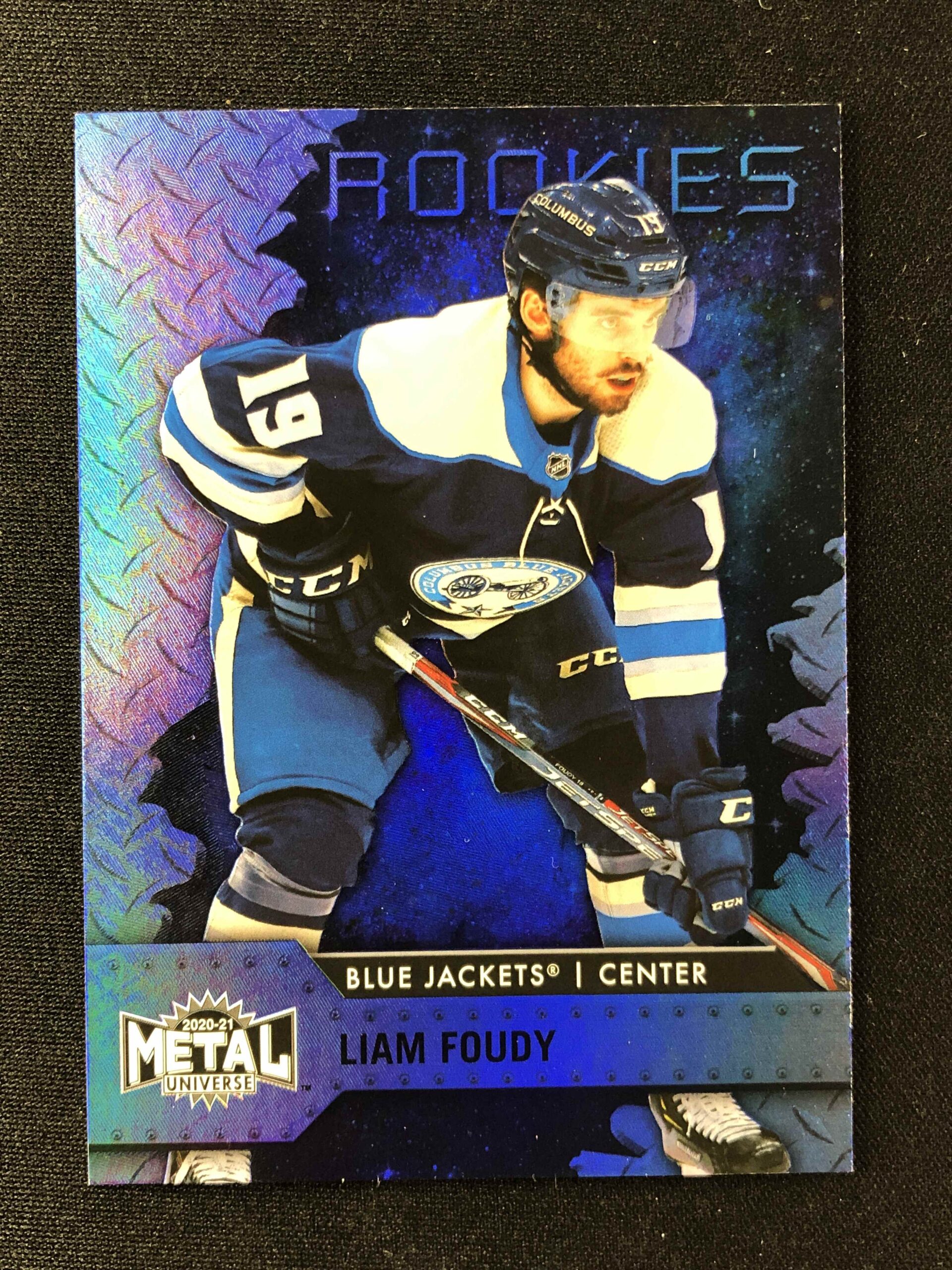 Sběratelská karta 2020/2021 Upper Deck Skybox Metal Universe Blue Spectrum 115 Liam Foudy Paralel
