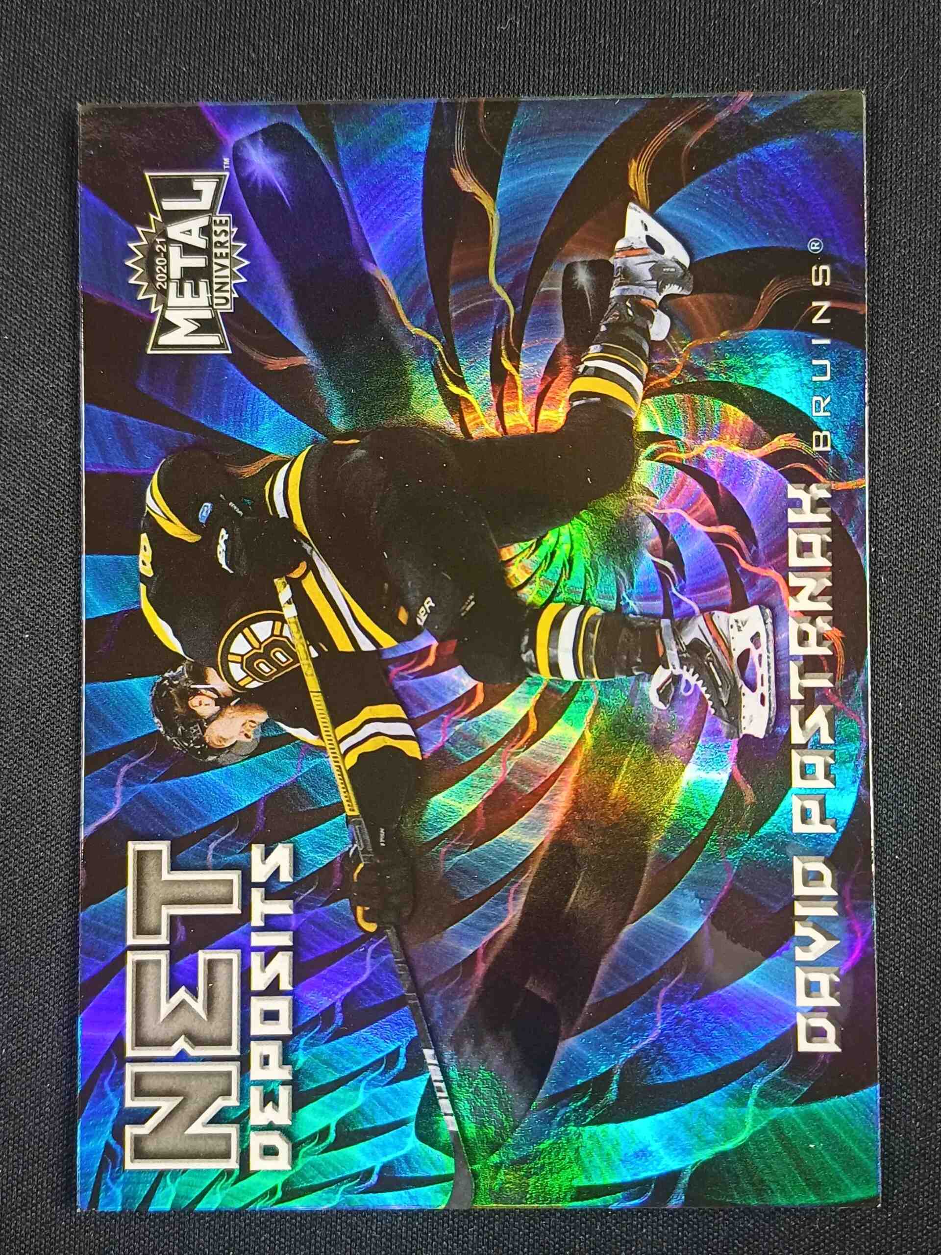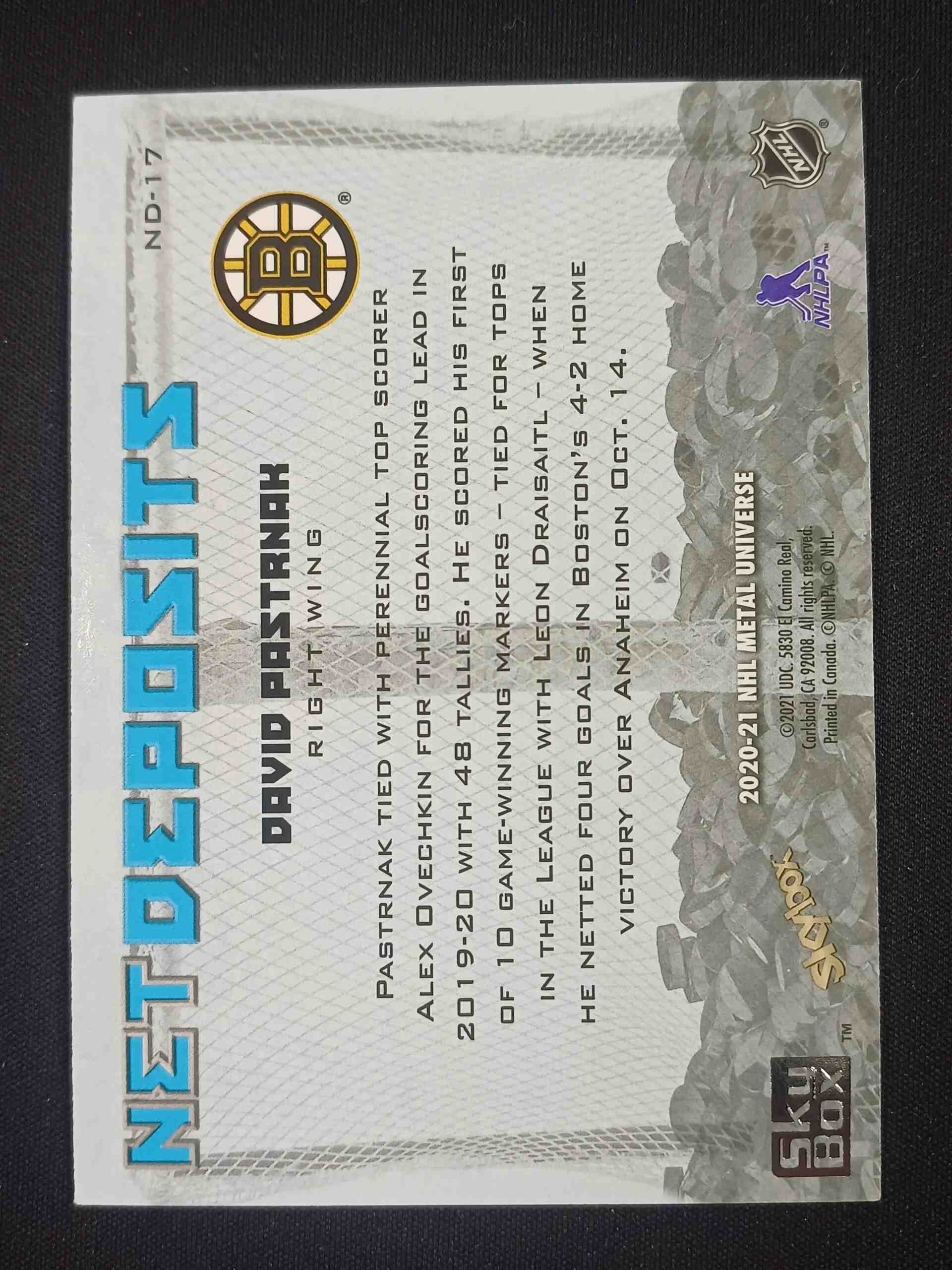 Sběratelská karta 2020/2021 Upper Deck Skybox Metal Universe Net Deposits ND-17 David Pastrnak Inzert