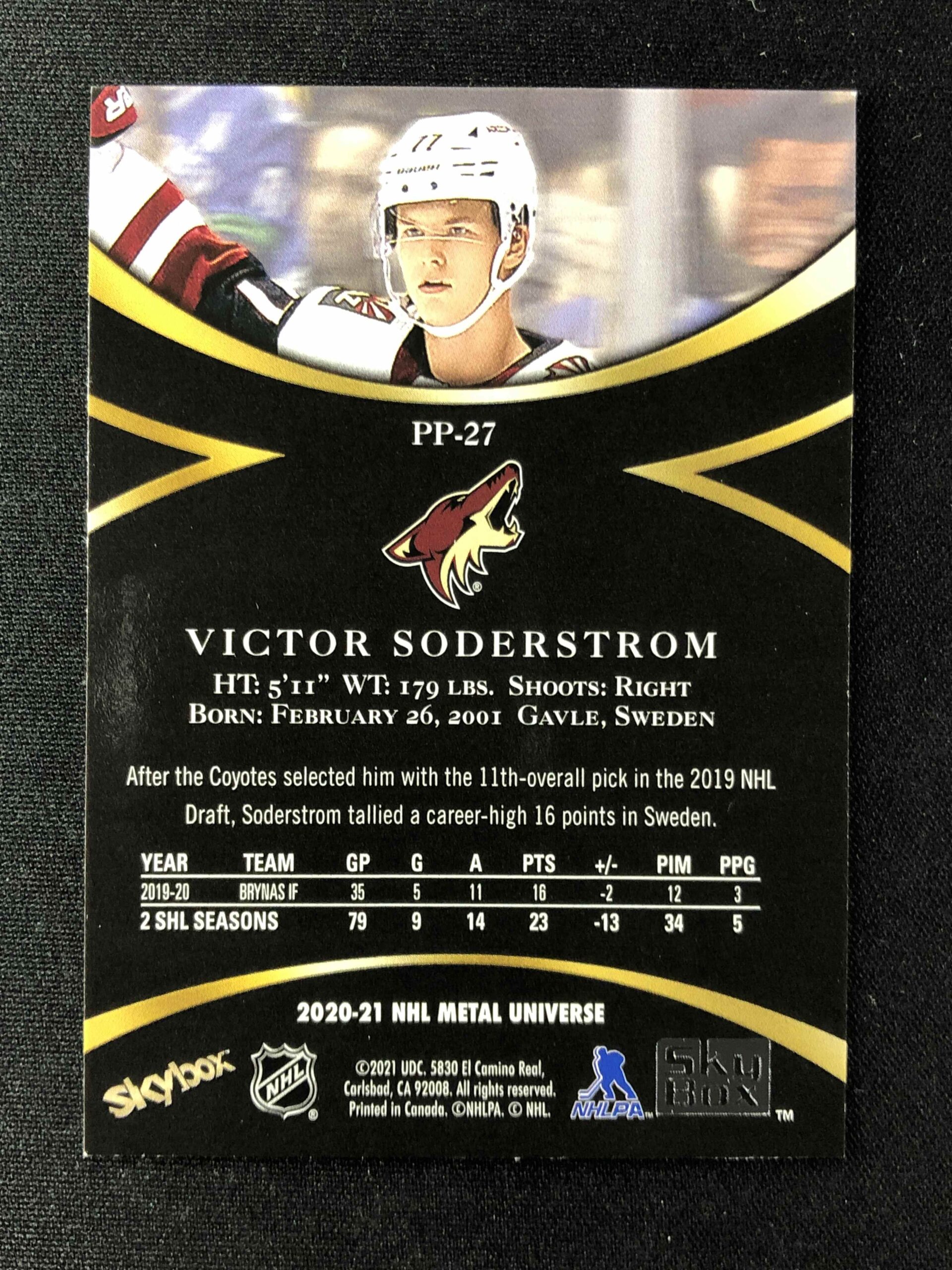 Sběratelská karta 2020/2021 Upper Deck Skybox Metal Universe Prospects PP-27 Victor Soderstrom Inzert