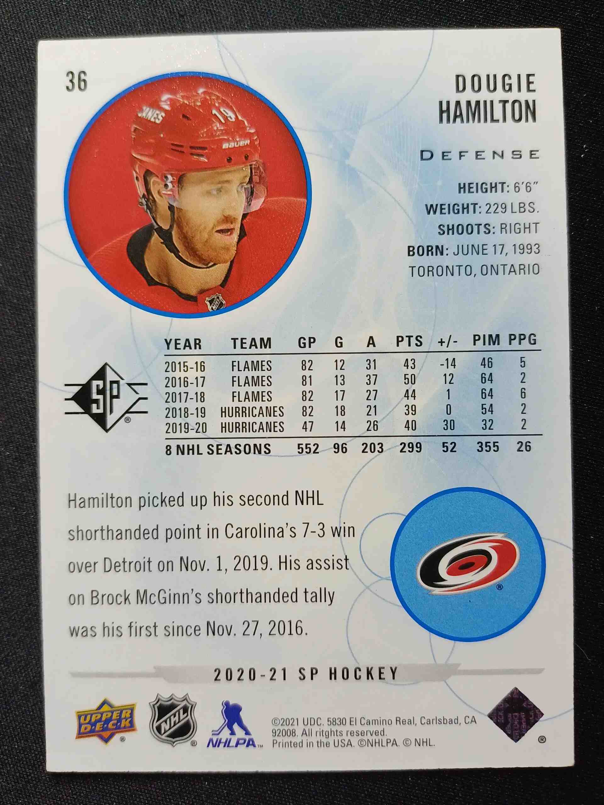 Sběratelská karta 2020/2021 Upper Deck SP Blue 36 Dougie Hamilton Paralel