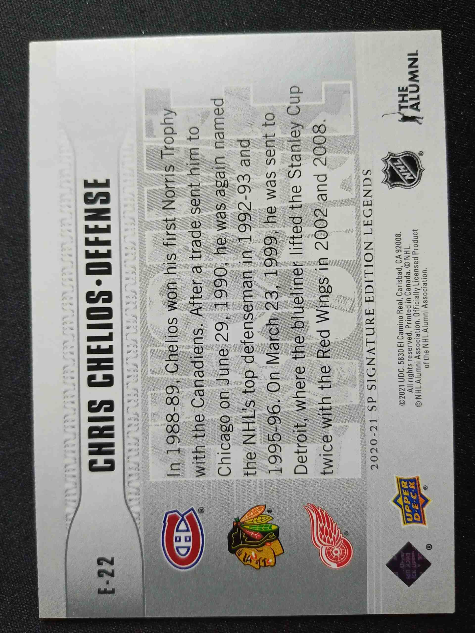 Sběratelská karta 2020/2021 Upper Deck SP Signature Editions Legends Evolve E-22 Chris Chelios Inzert