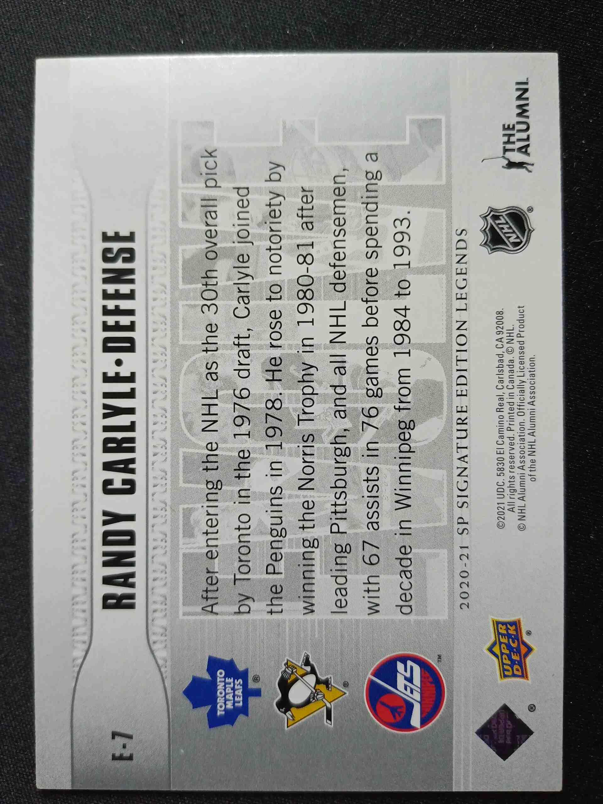 Sběratelská karta 2020/2021 Upper Deck SP Signature Editions Legends Evolve E-7 Randy Carlyle Inzert