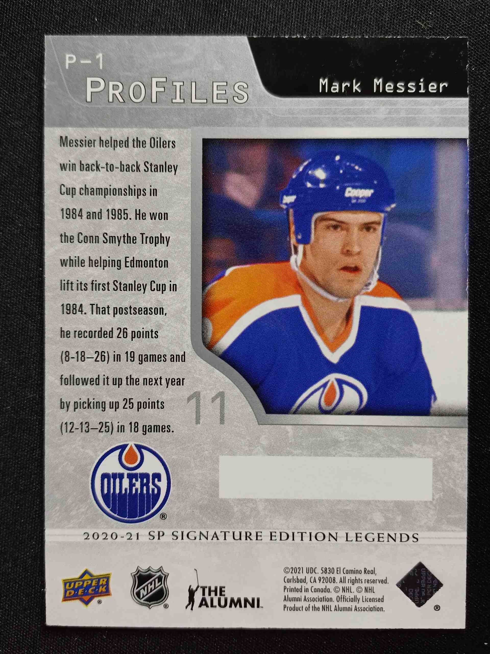 Sběratelská karta 2020/2021 Upper Deck SP Signature Editions Legends ProFiles P-1 Mark Messier Inzert