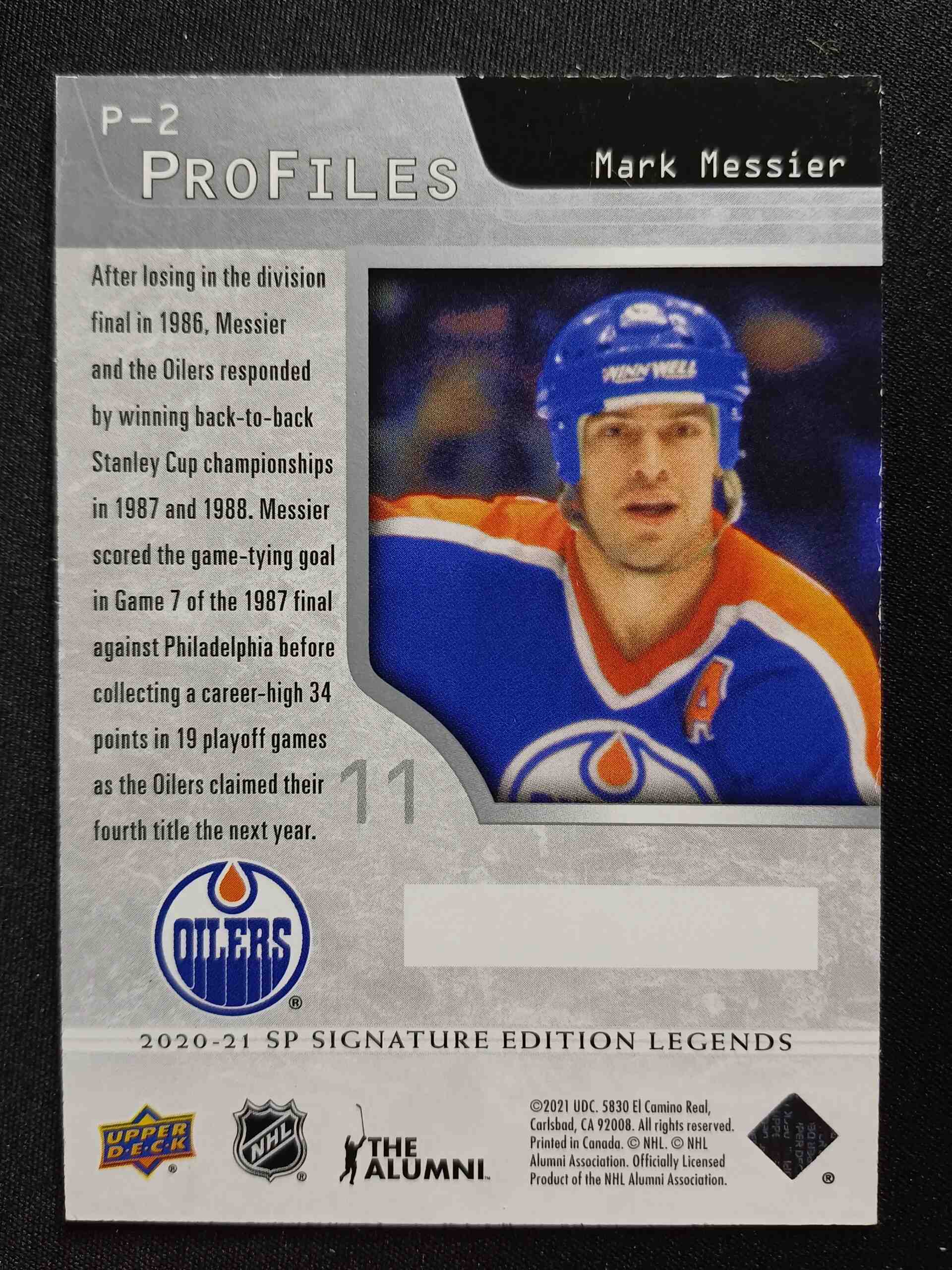 Sběratelská karta 2020/2021 Upper Deck SP Signature Editions Legends ProFiles P-2 Mark Messier Inzert