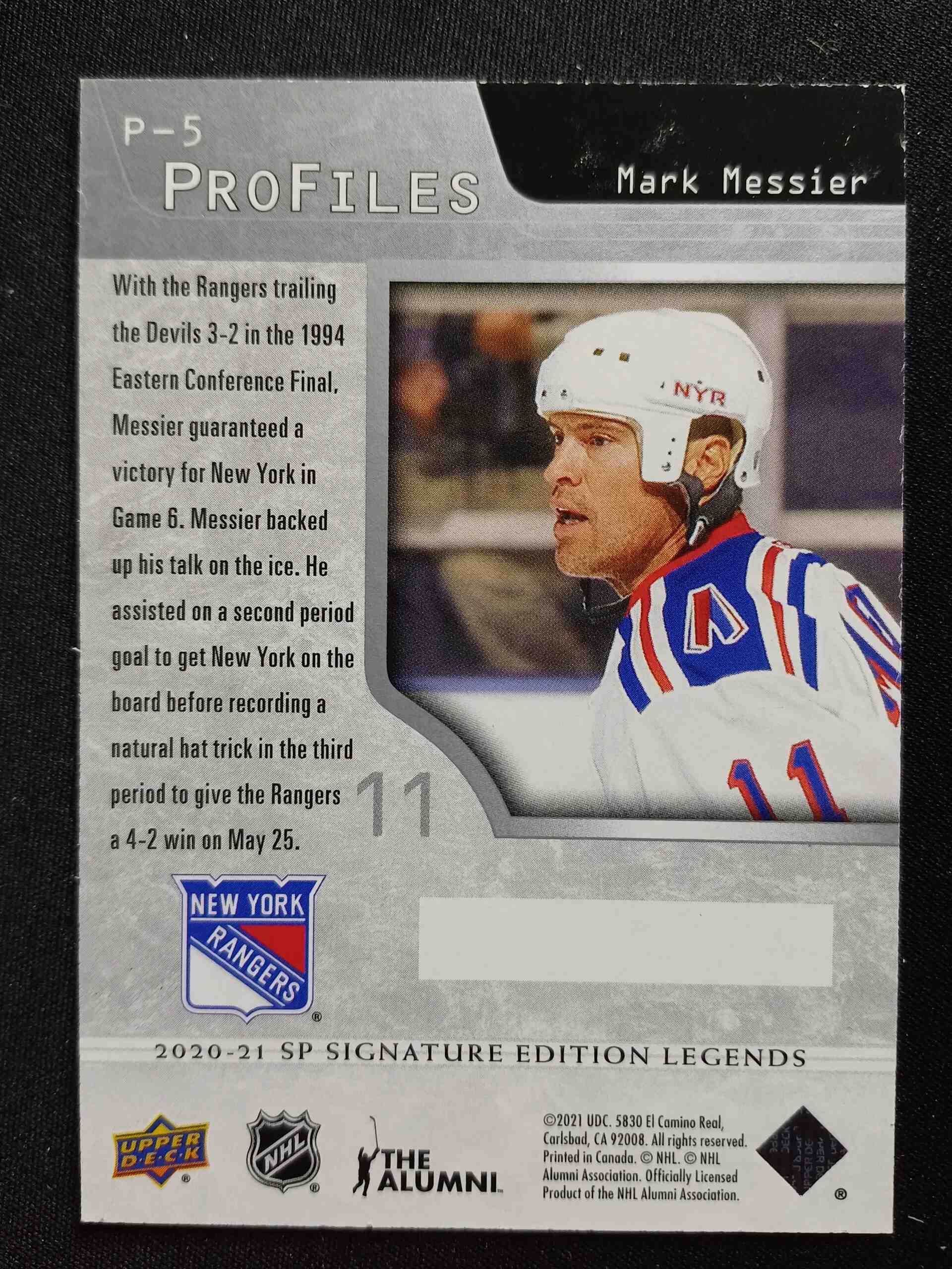 Sběratelská karta 2020/2021 Upper Deck SP Signature Editions Legends ProFiles P-5 Mark Messier Inzert