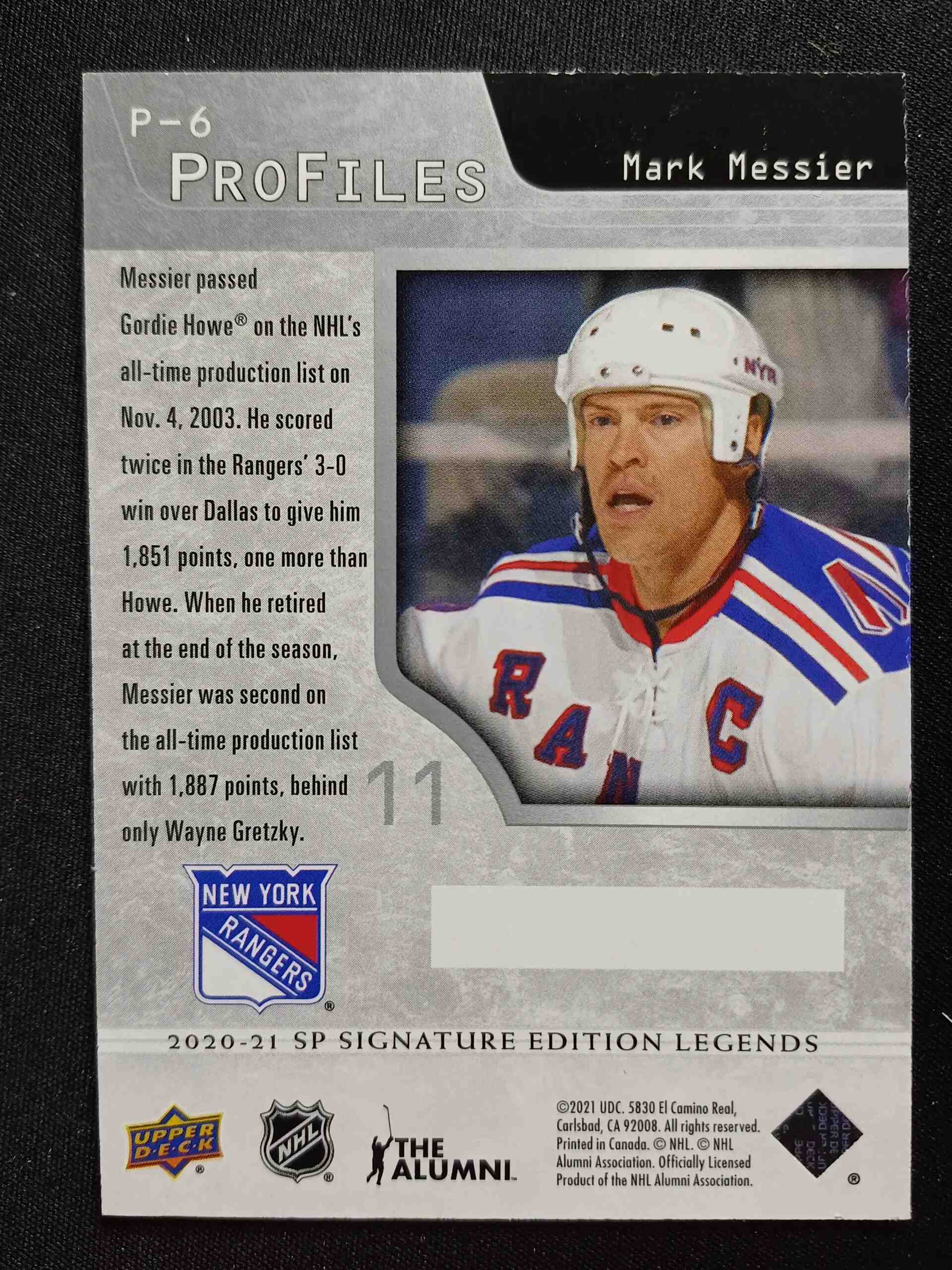 Sběratelská karta 2020/2021 Upper Deck SP Signature Editions Legends ProFiles P-6 Mark Messier Inzert