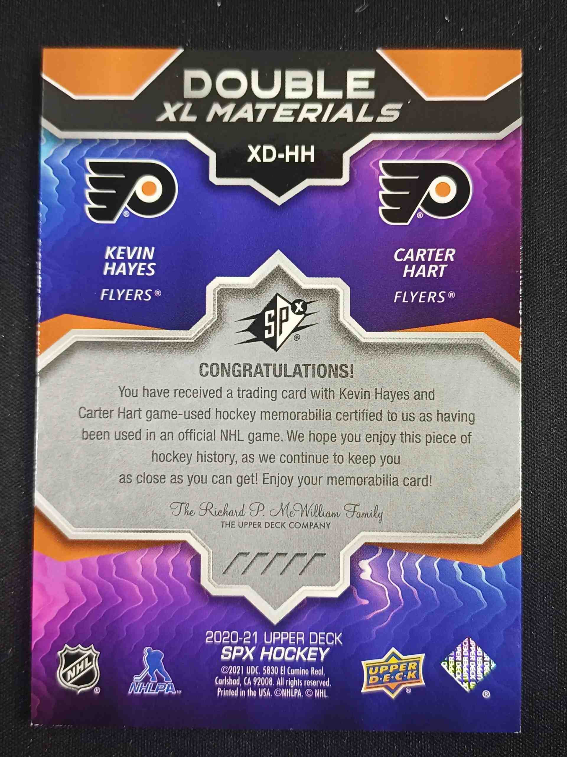 Sběratelská karta 2020/2021 Upper Deck SPx Double XL Duos Materials XD-HH Carter Hart Jersey 54/99