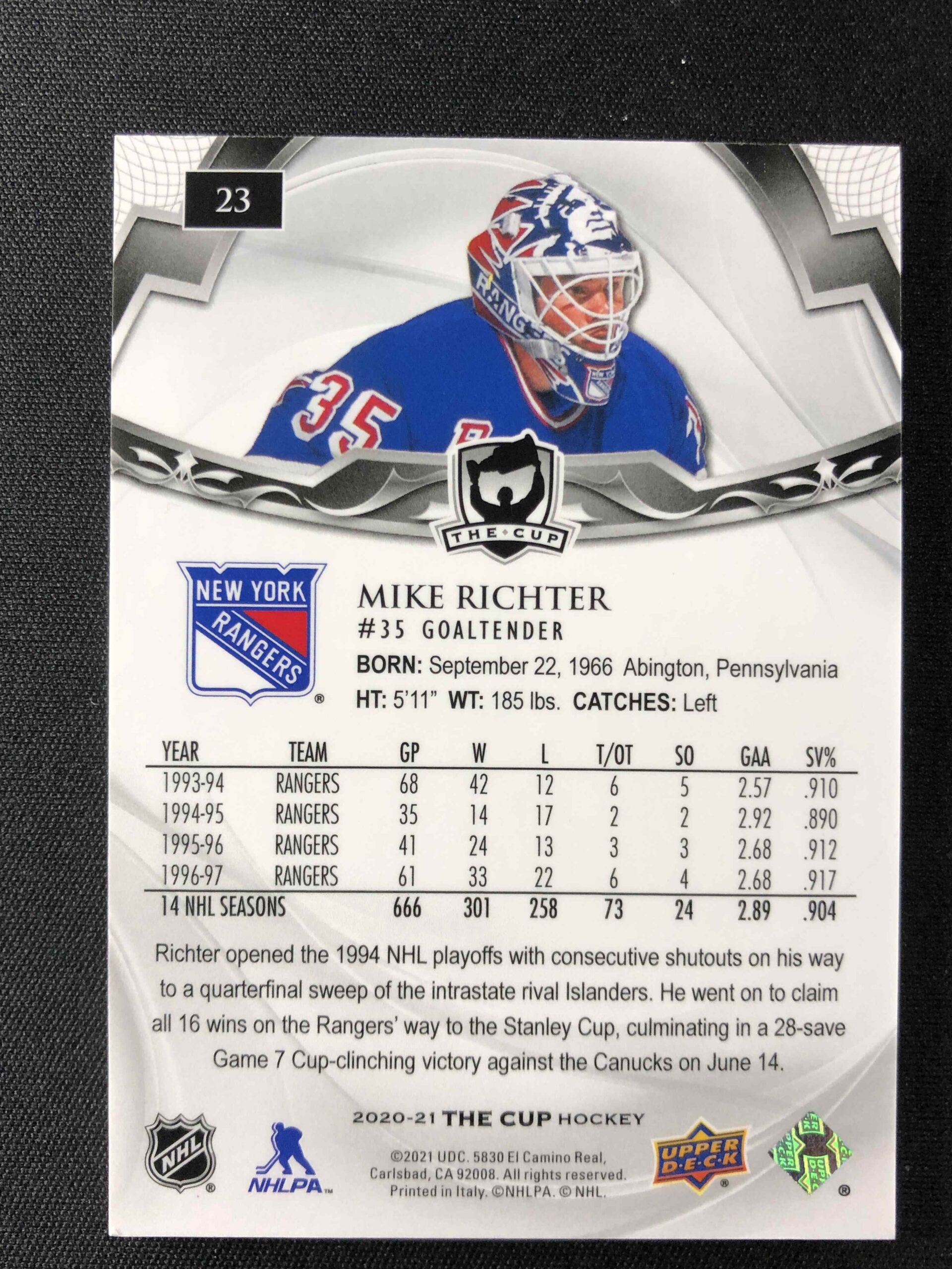 Sběratelská karta 2020/2021 Upper Deck The Cup Base 23 Mike Richter 225/249