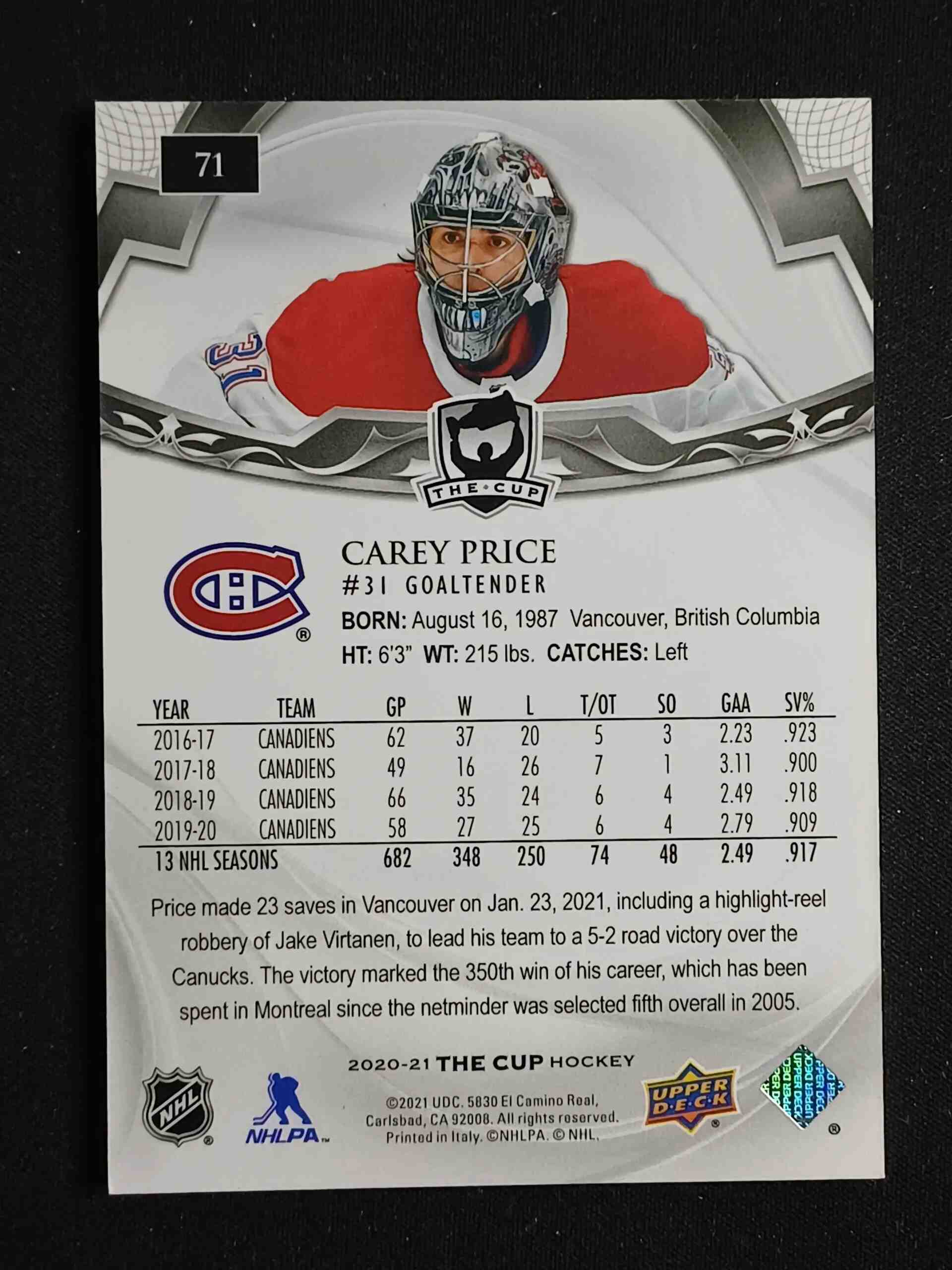 2020/2021 Upper Deck The Cup Base 71 Carey Price 148/249