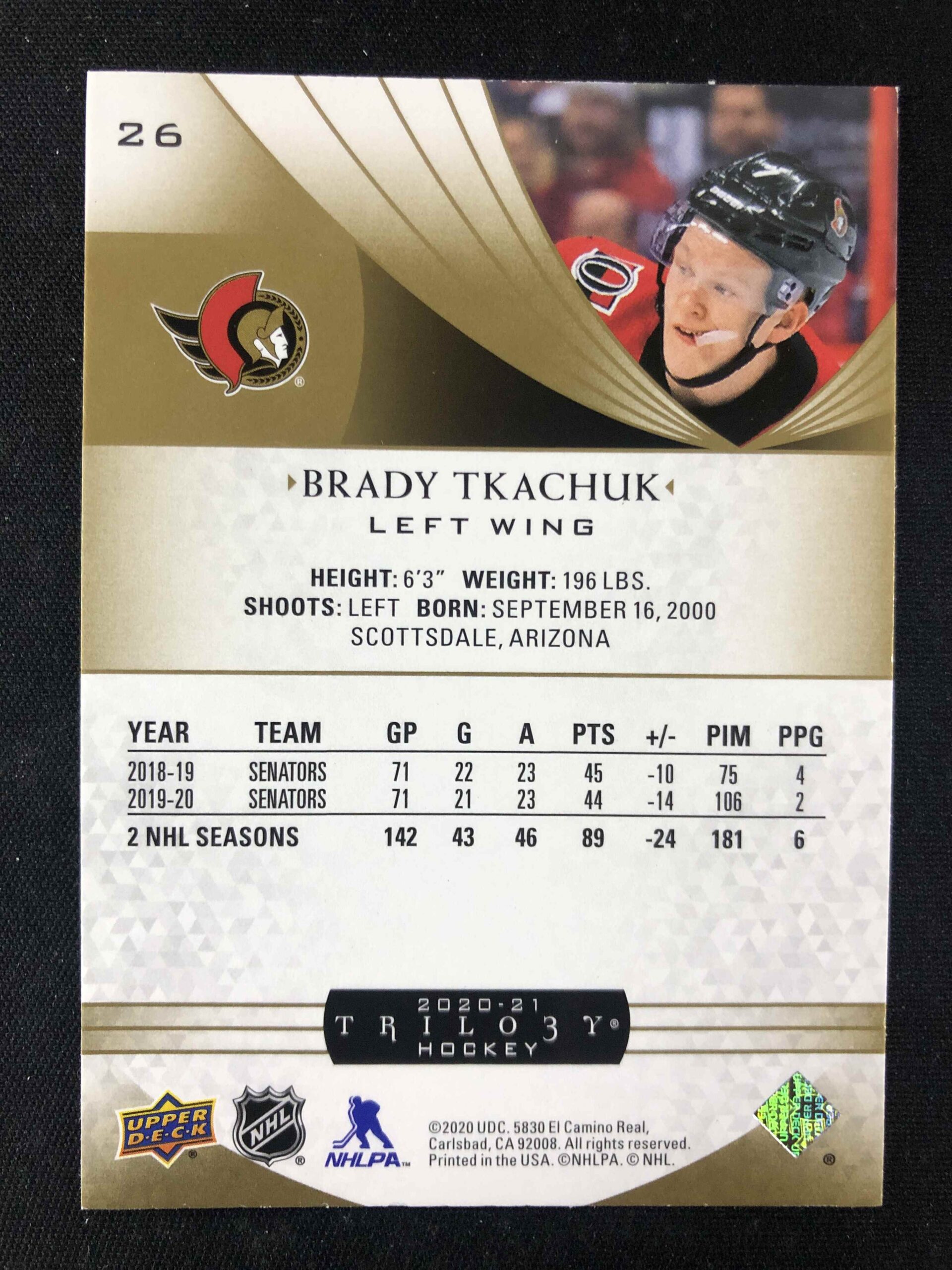 2020/2021 Upper Deck Trilogy Base 26 Brady Tkachuk