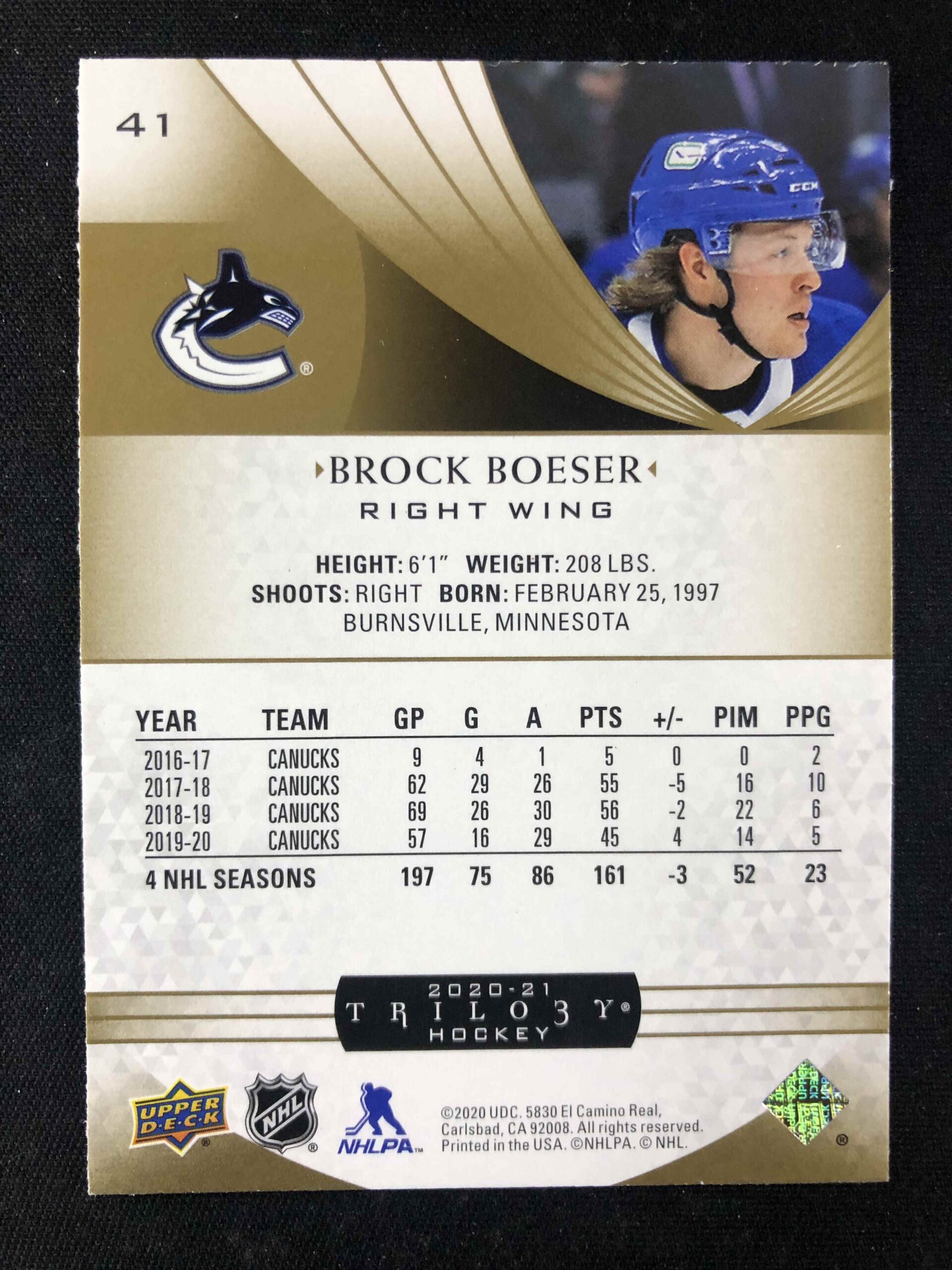 Sběratelská karta 2020/2021 Upper Deck Trilogy Base 41 Brock Boeser