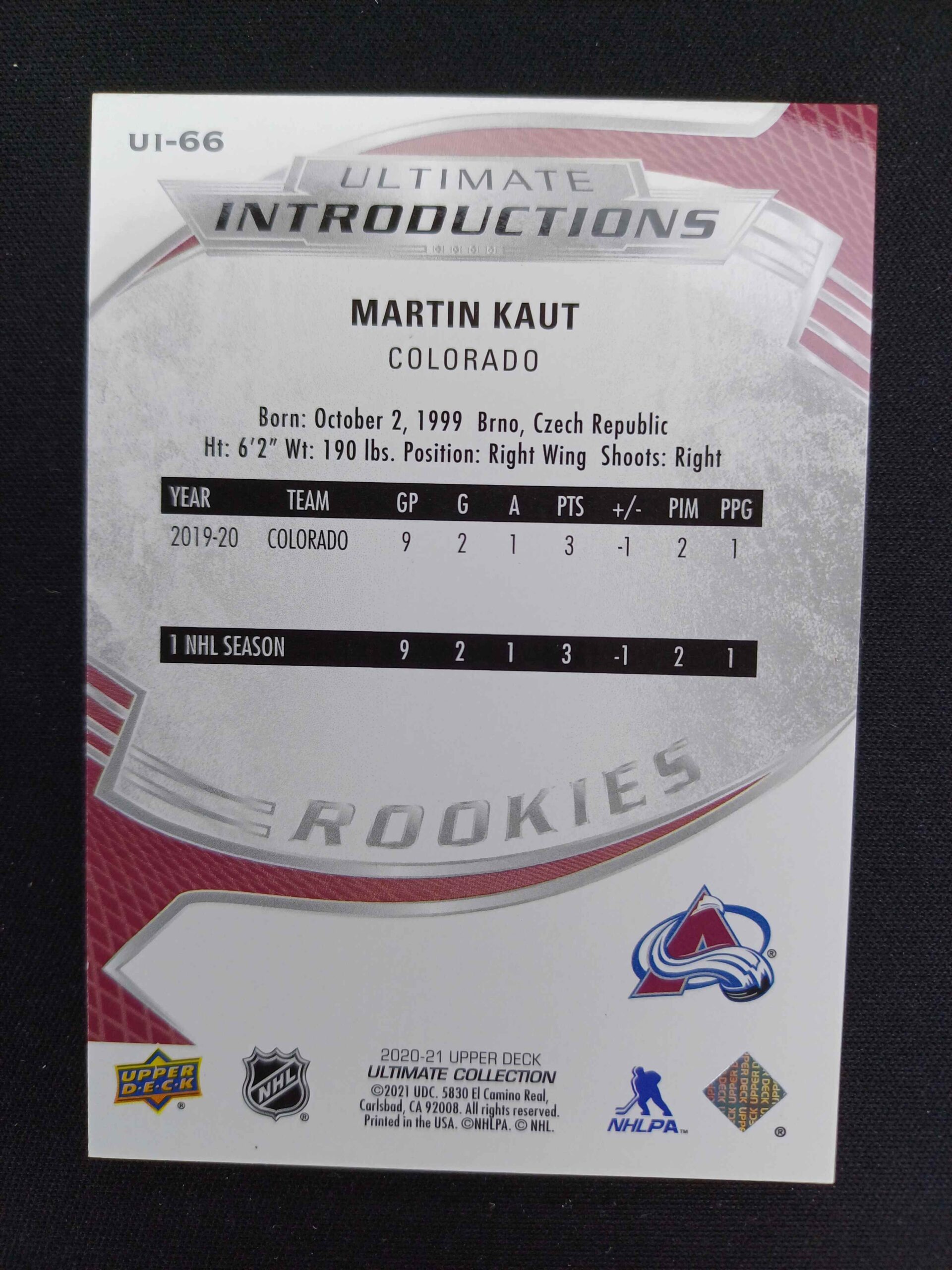 Sběratelská karta 2020/2021 Upper Deck Ultimate Collection Ultimate Introductions UI-66 Martin Kaut Inzert