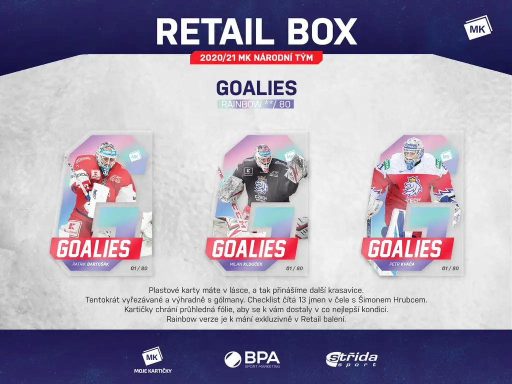 V každém druhém balíčku v průměru speciální karta. Hledejte paralelní karty Red xx/23 a Blue x/5, Goalies die-cut Red, Blue a Gold. Dále také limitované inserty Best Capitans xx/40.