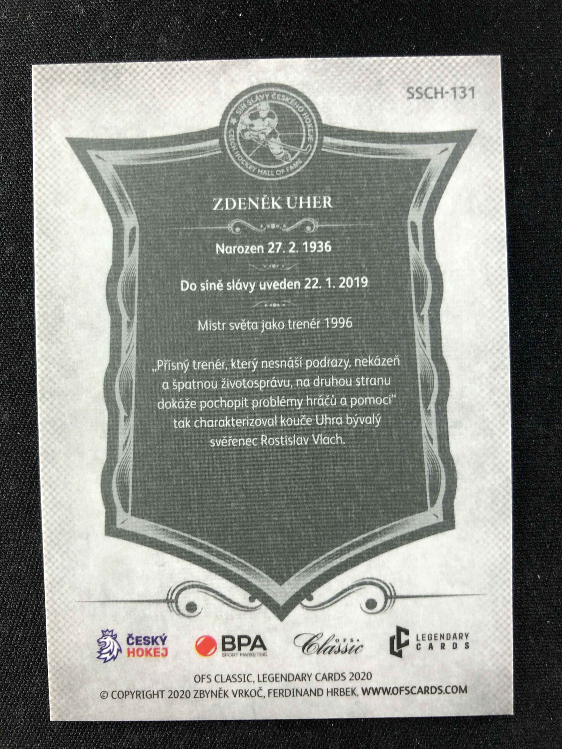 Sběratelská karta 2020 OFS Classic Síň Slávy Českého Hokeje SSCH-131 Zdeněk Uher Inzert